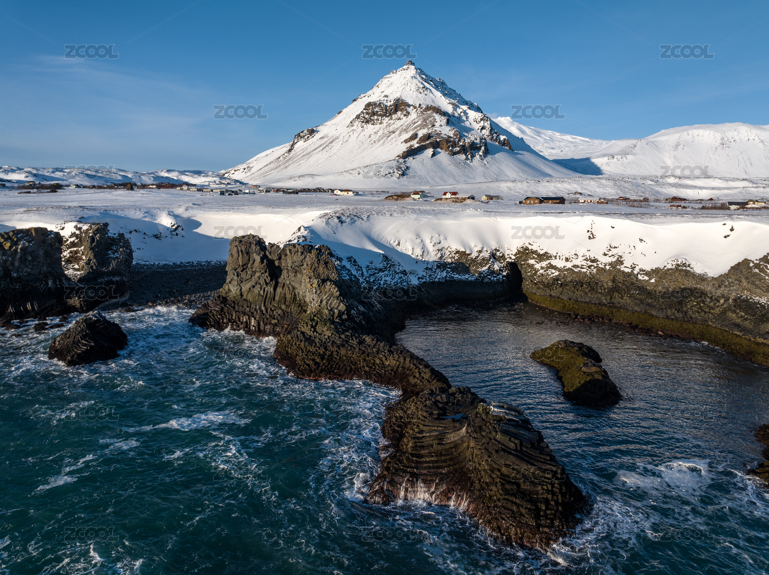 冰岛,北极圈,斯奈山半岛,黑沙滩,花岗岩,航拍,高空,形状,岩石,火山
