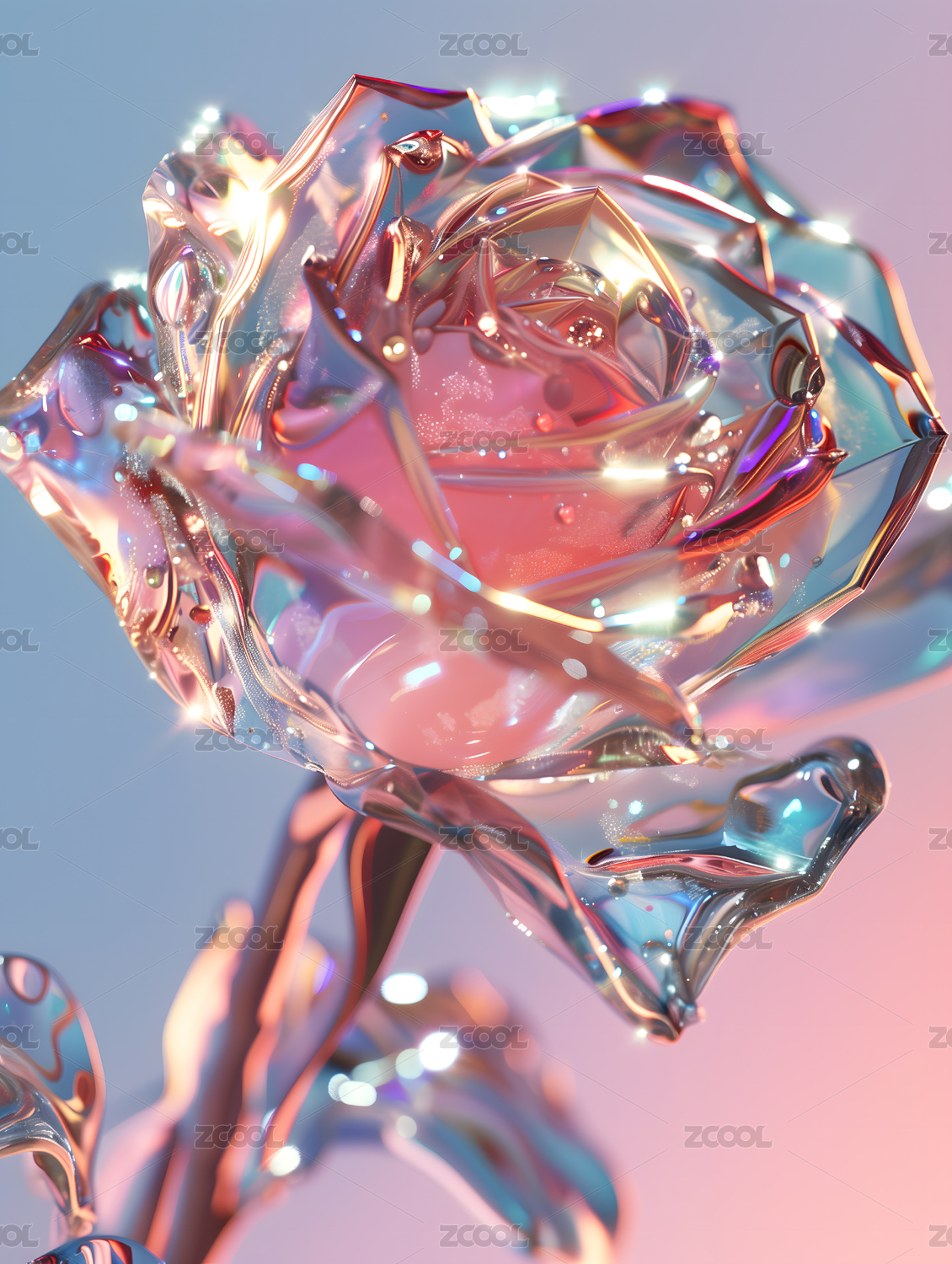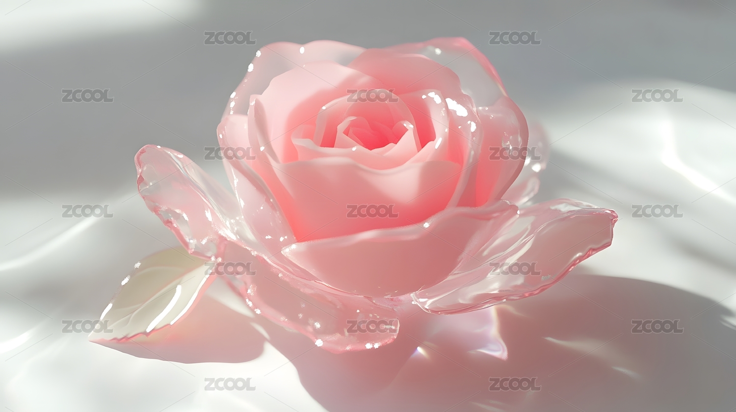 透明水晶质感粉色玫瑰