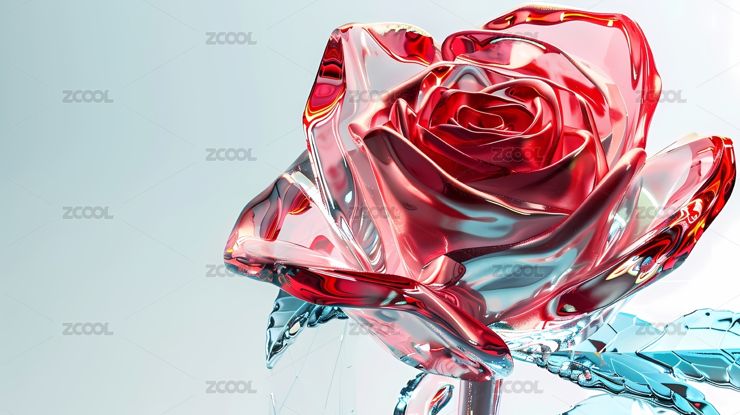 数码科技立体透明水晶玫瑰插画海报背景