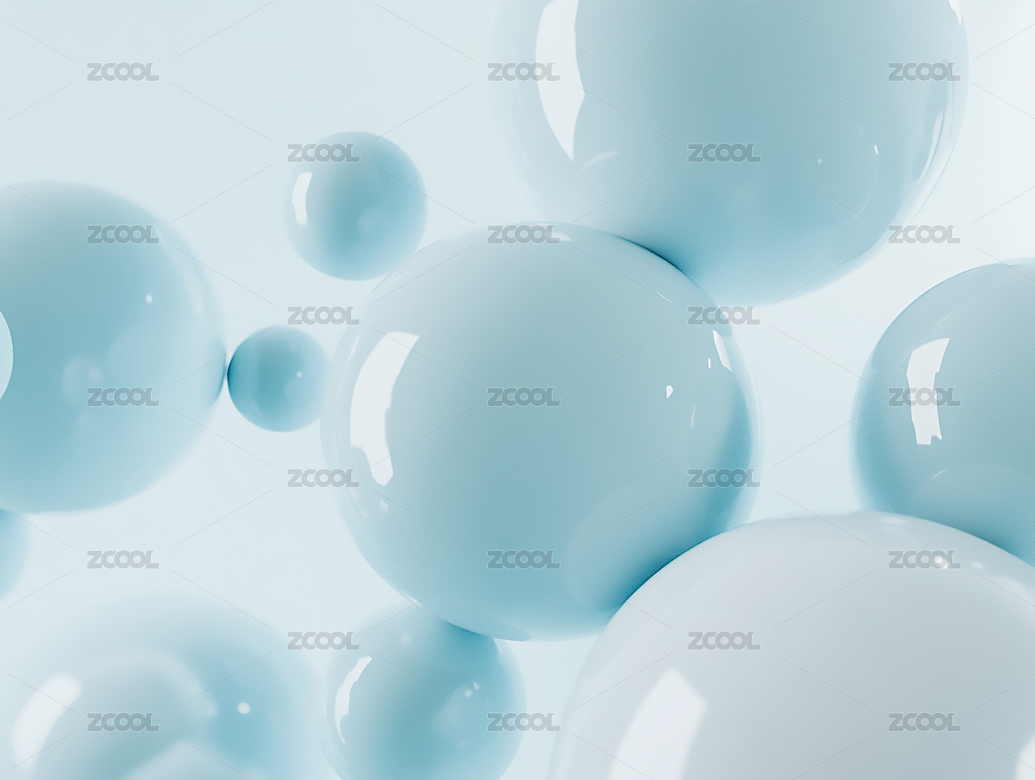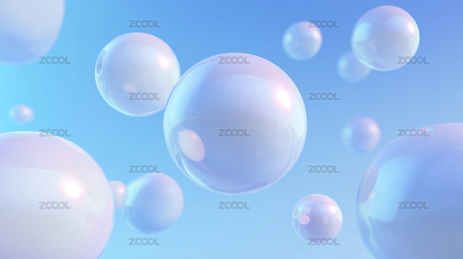 科幻感蓝色透明有机材料圆球气泡3D插画背
