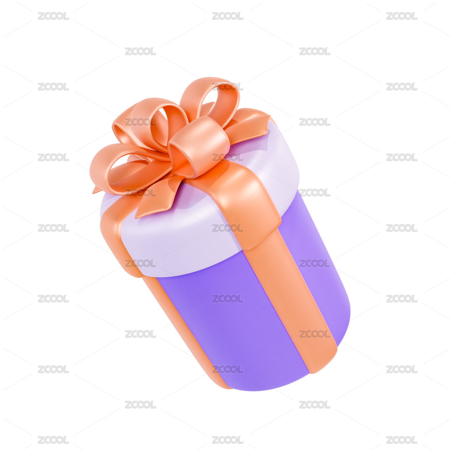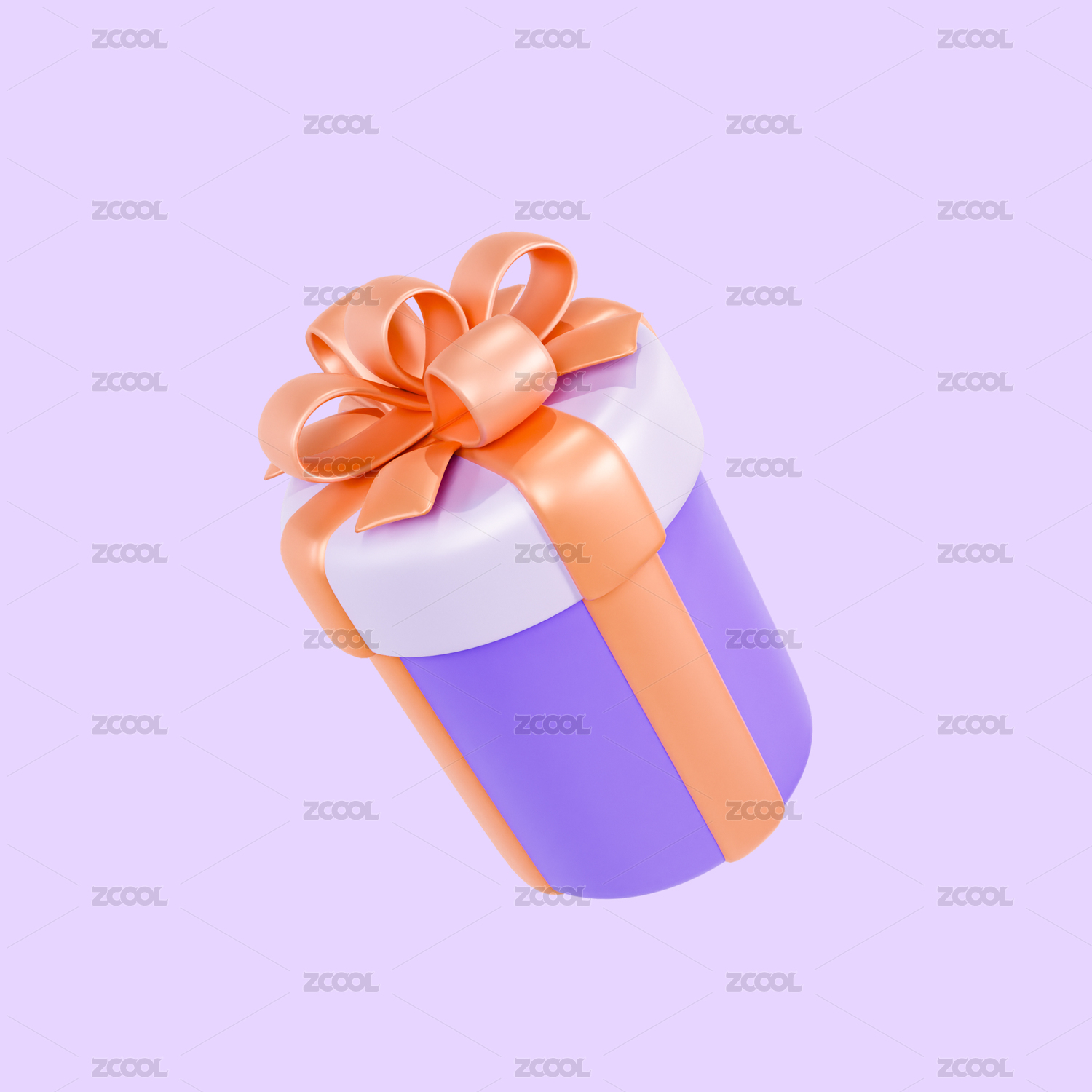 3D渲染可爱的绑着蝴蝶结的渐变紫色礼盒