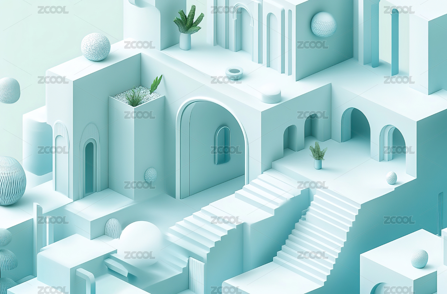 3D渲染的几何图形场景图