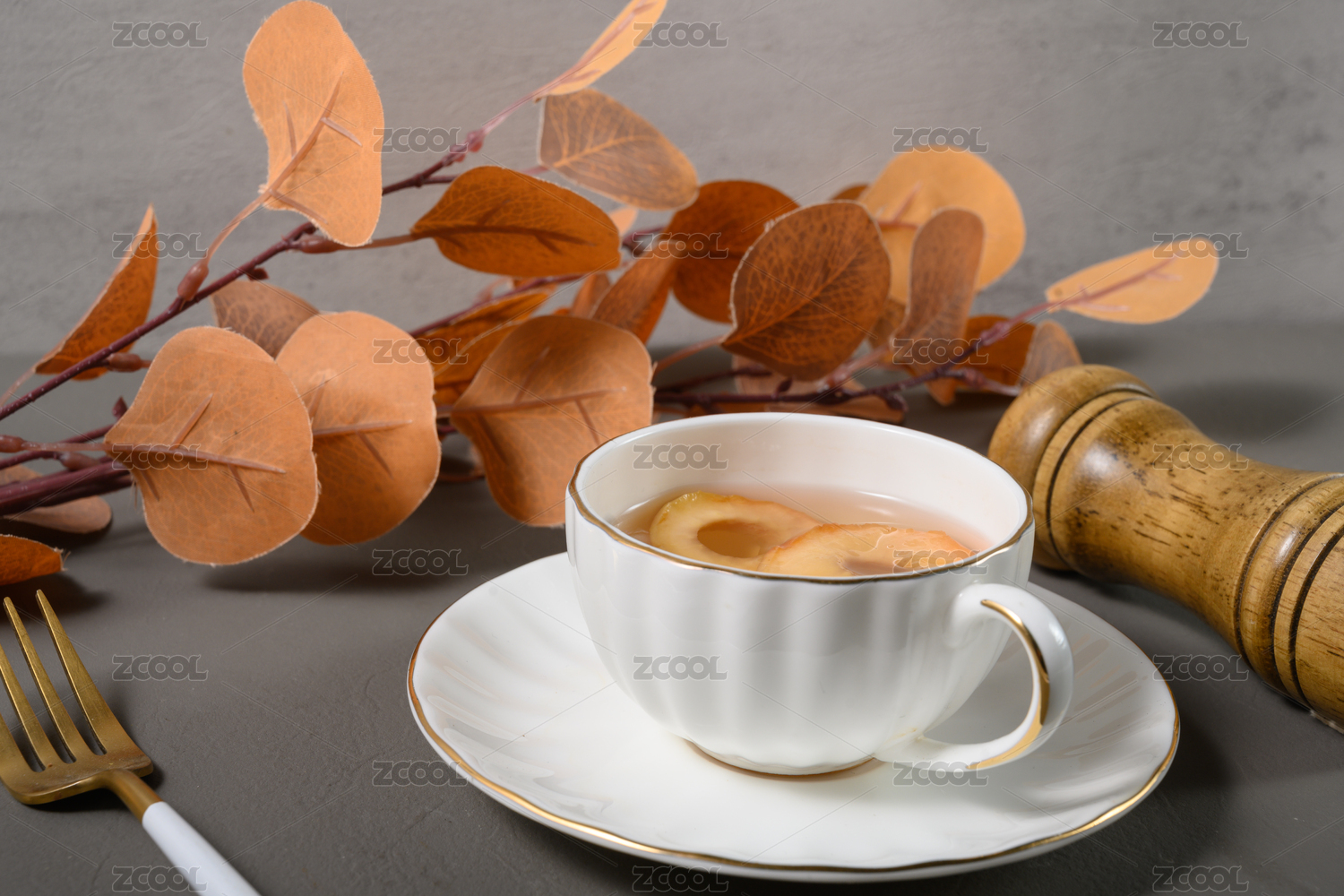 桌面上个的杯子里的甘甜可口的龙胆草茶