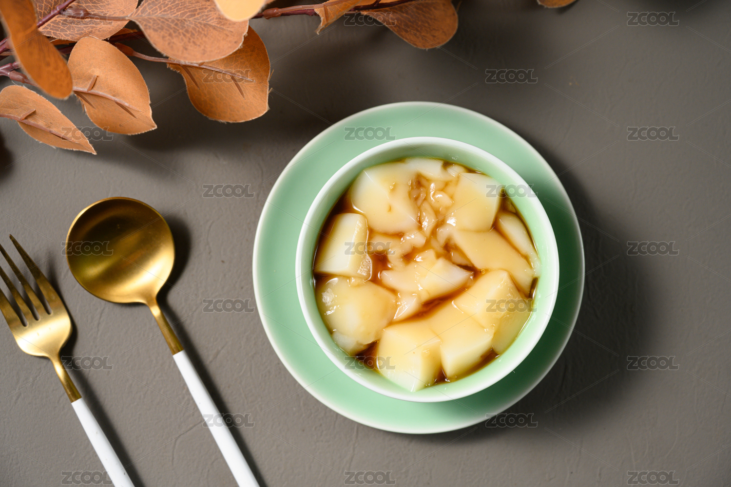 桌面上的碗里的美味可口的冰糖炖雪梨