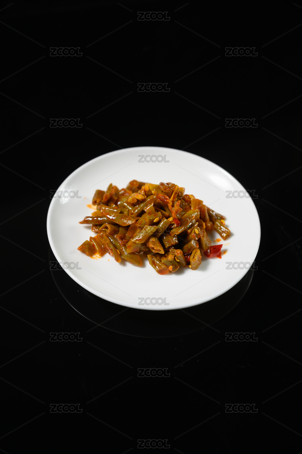 桌面上的盘子里的美味可口的香辣萝卜丁
