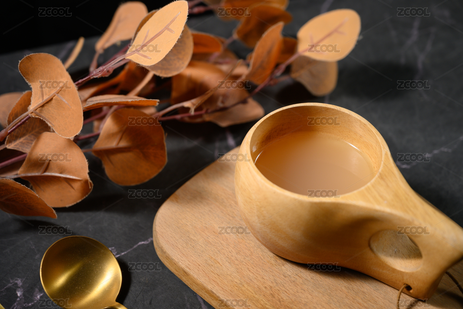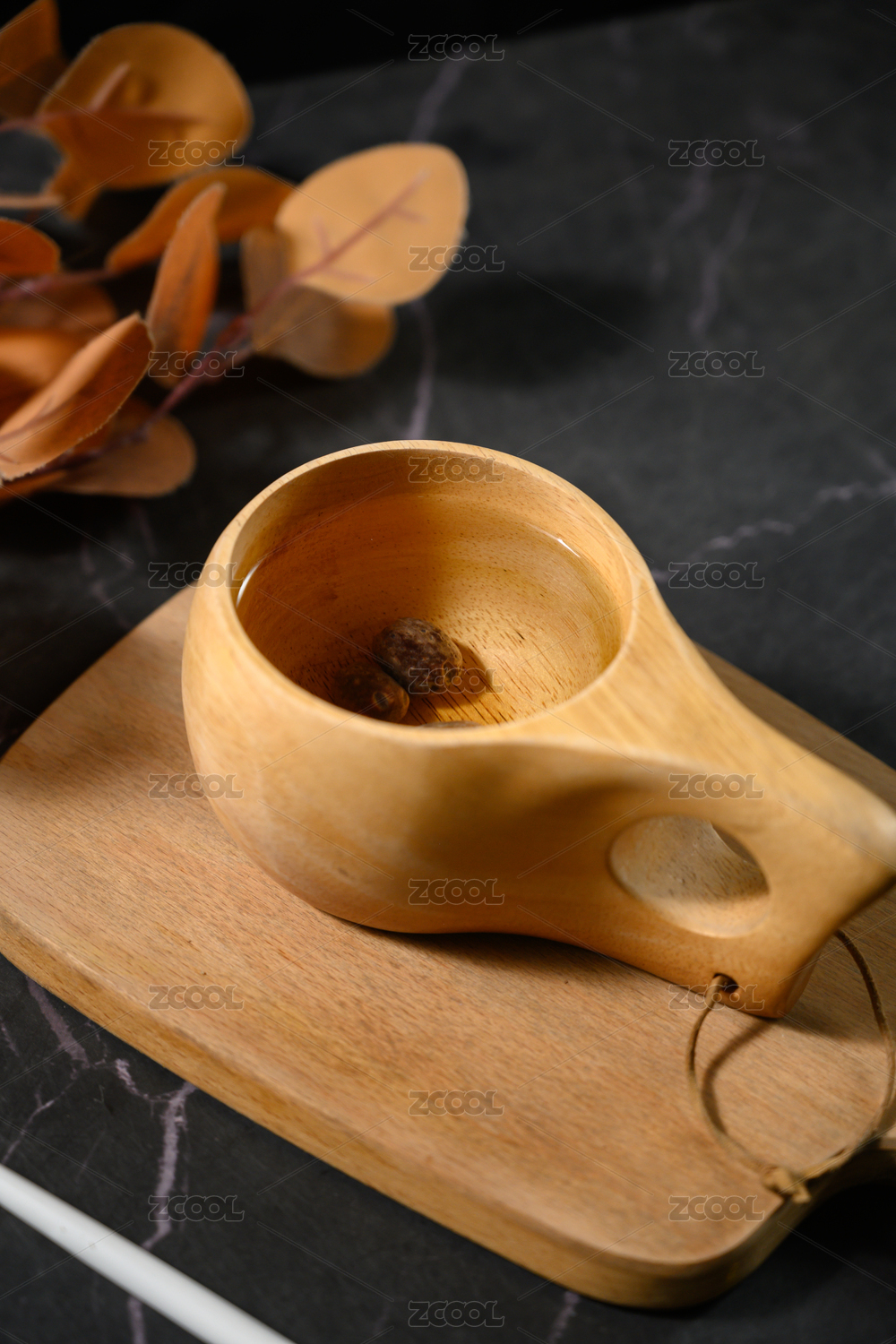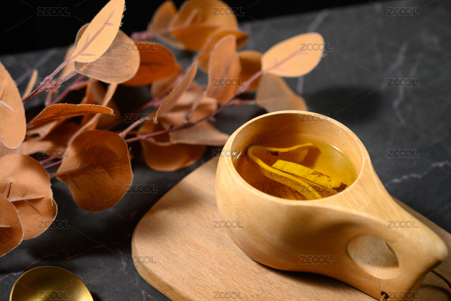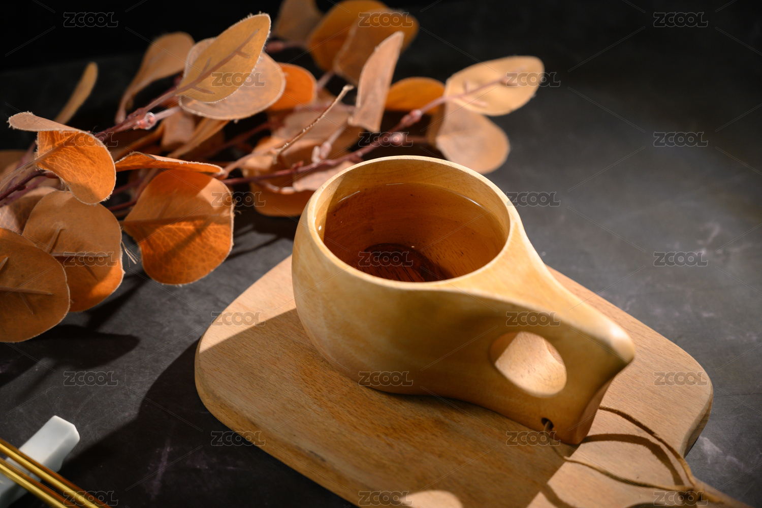 桌面上的杯子里的甘甜可口的胰岛果茶