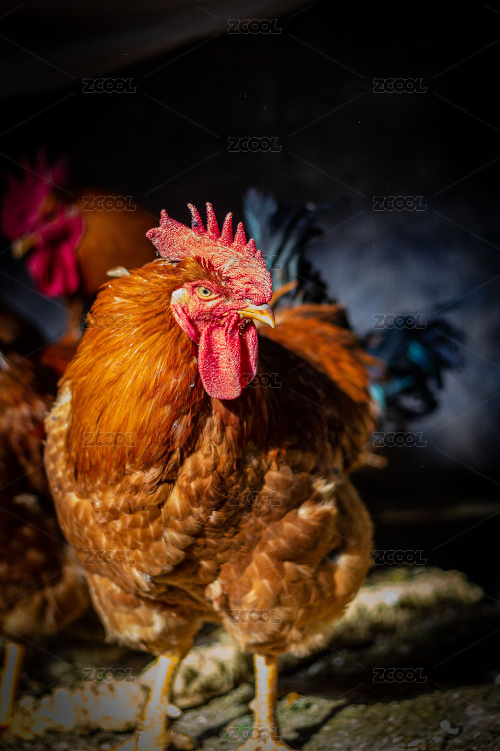 公鸡,鸡,鸡舍,暗调,金色,黄色,家禽,农业,农业的,散养
