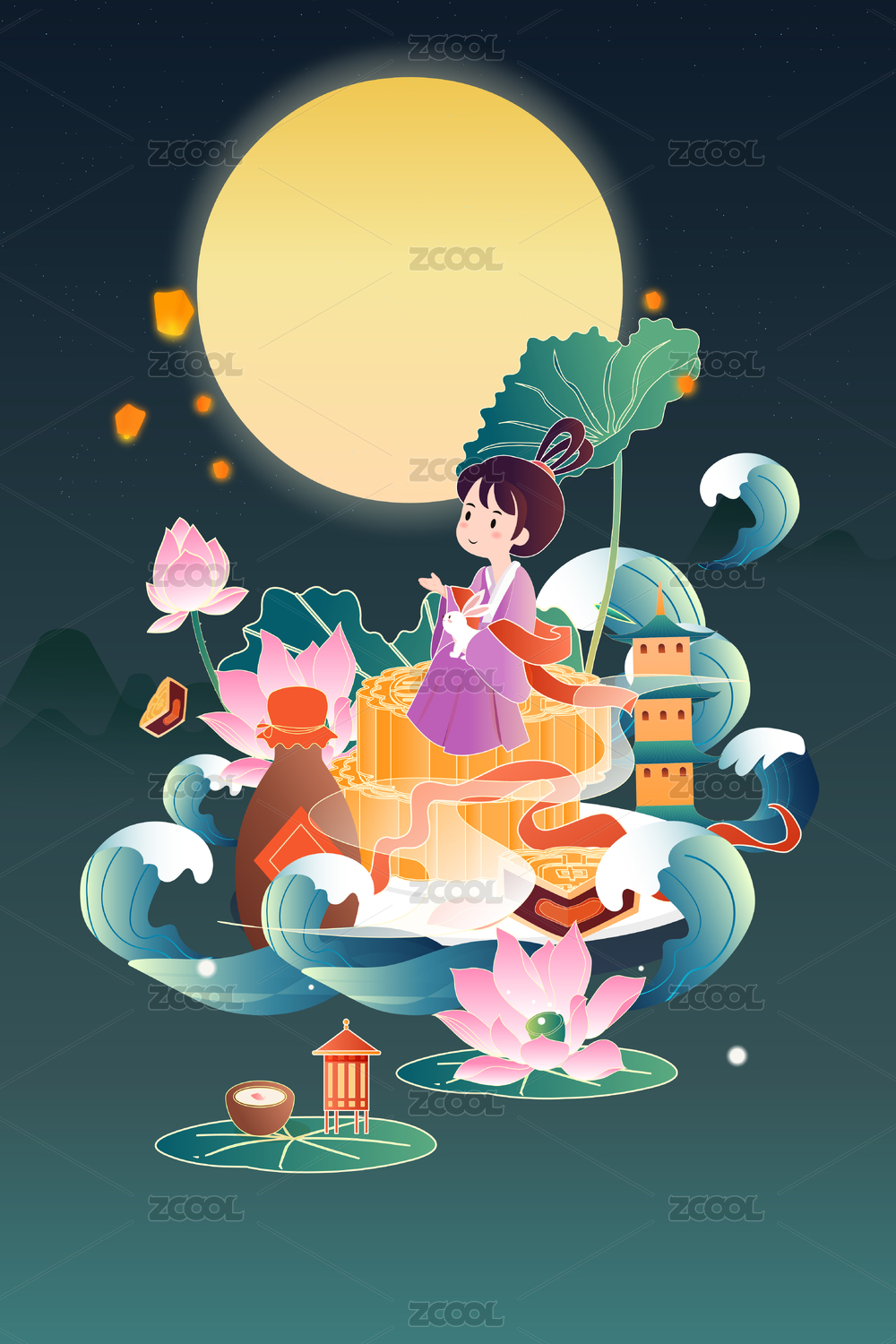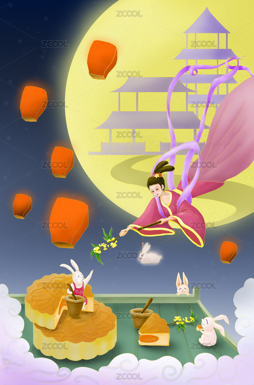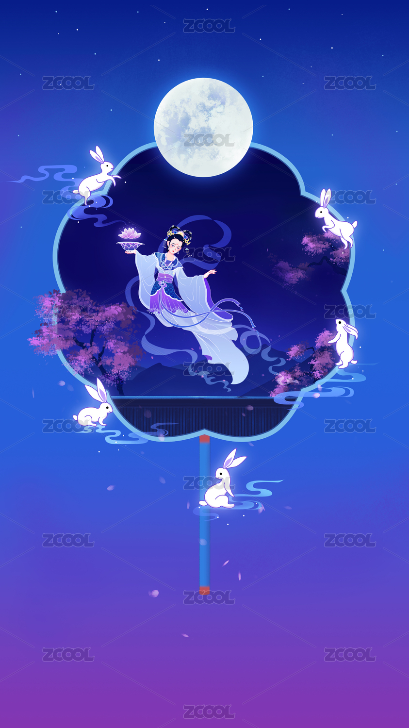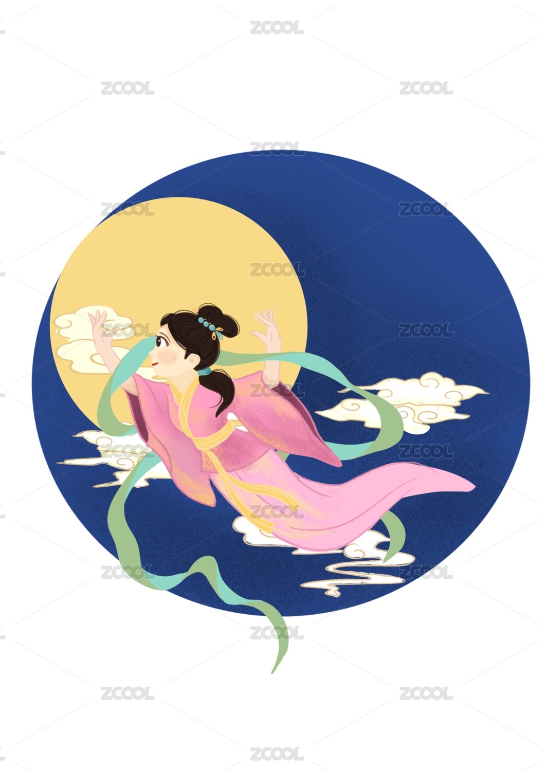 嫦娥奔月中秋节插画