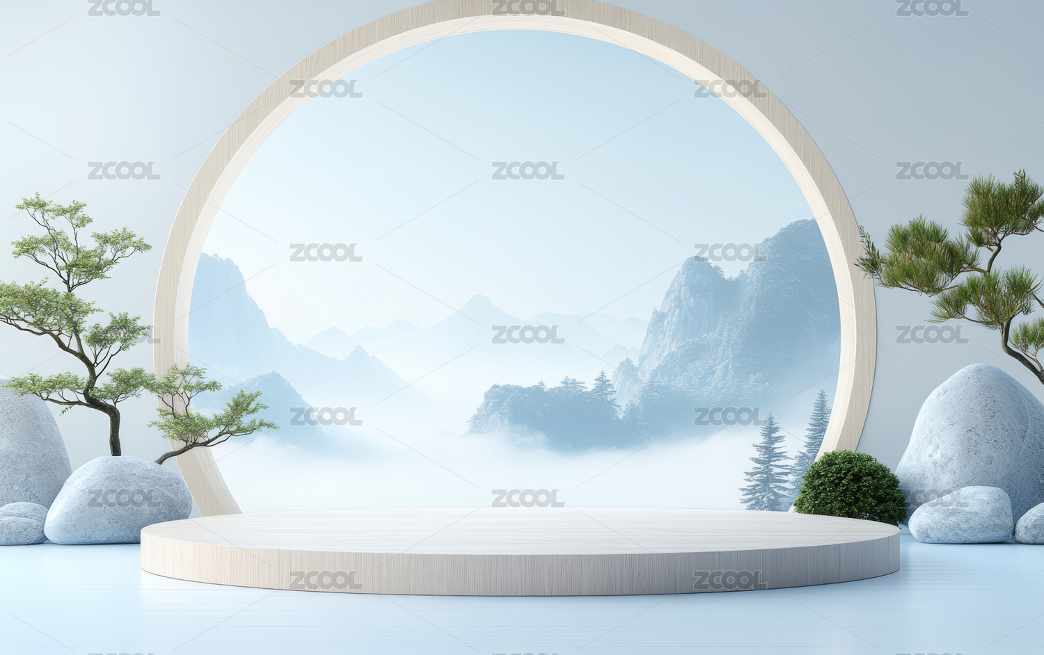 产品展台,电子商务,背景墙,中式,圆形展台,设计,三维图形,简单,展览,商品