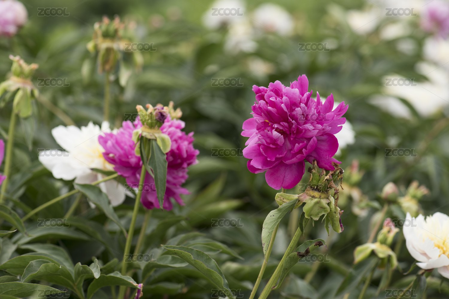 花园里即将开败了的粉色芍药花