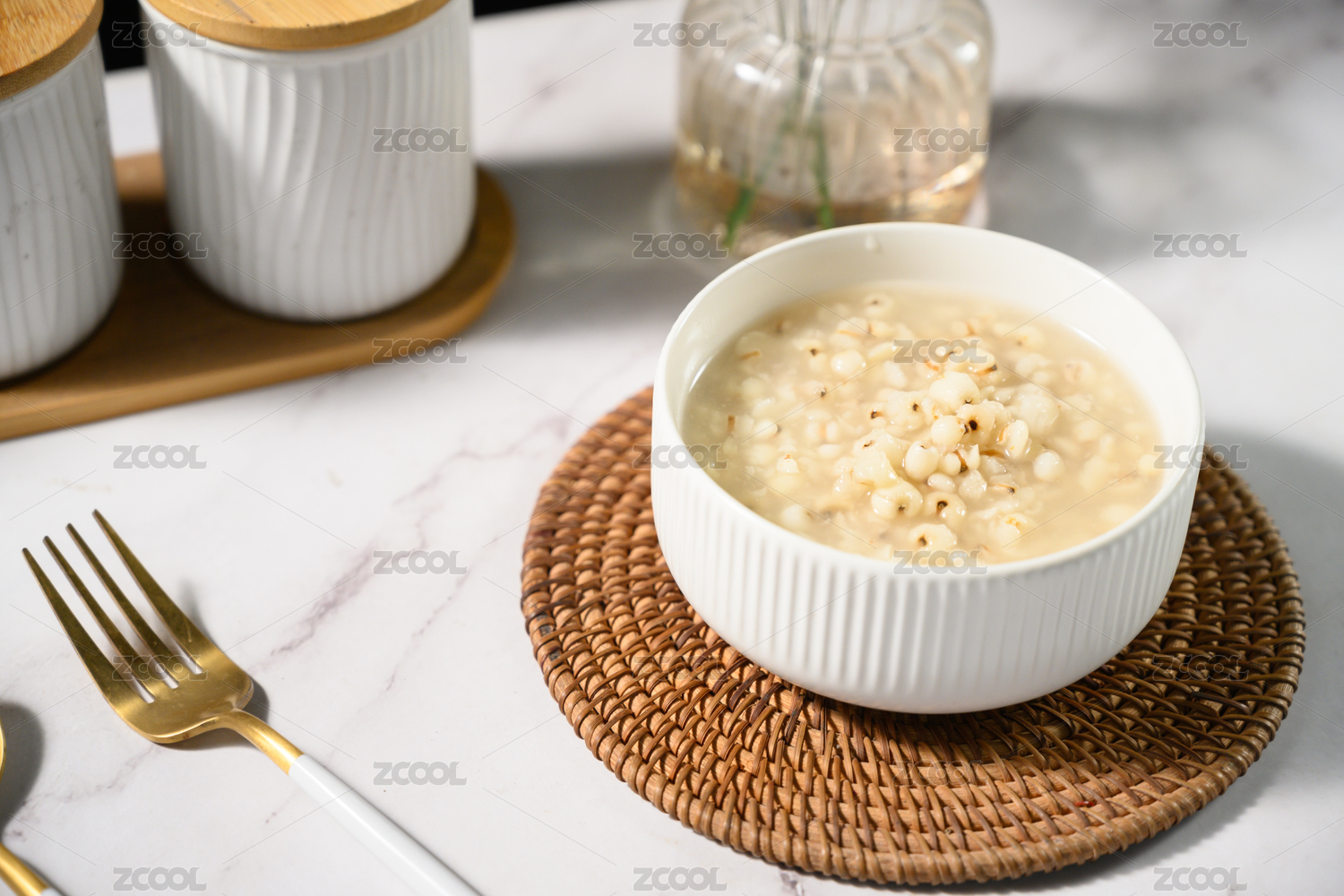 桌面上的碗里的美味可口的薏米水