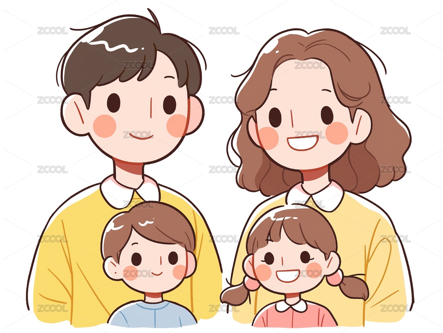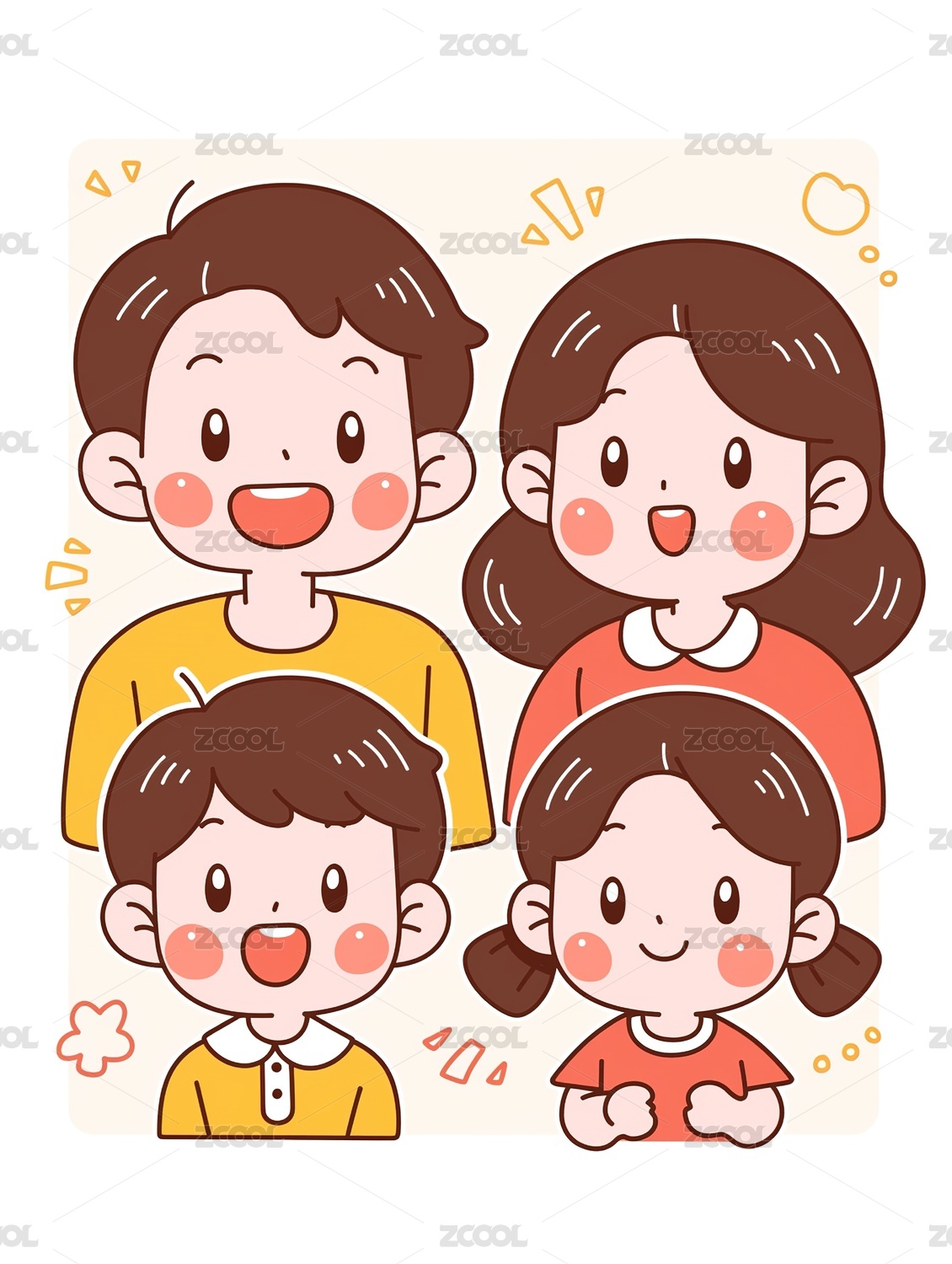卡通,简笔画,一家人,爸爸,妈妈,孩子,男孩,女孩,幸福,开心