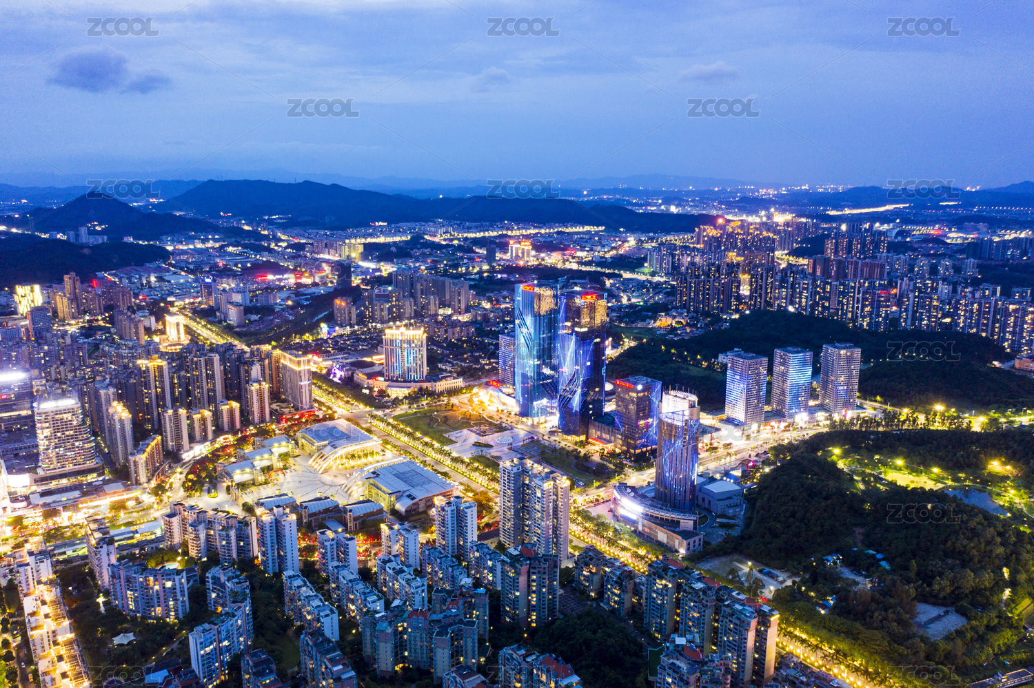 深圳光明新区CBD高新科技区蓝调高空航拍