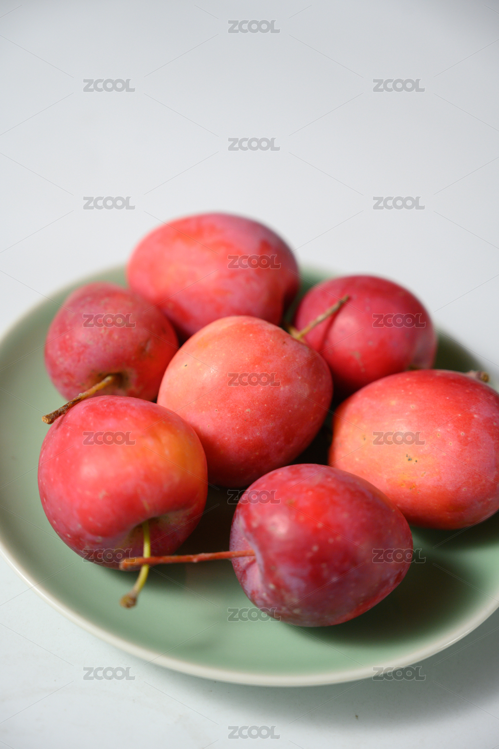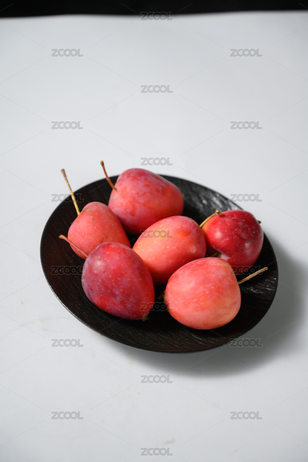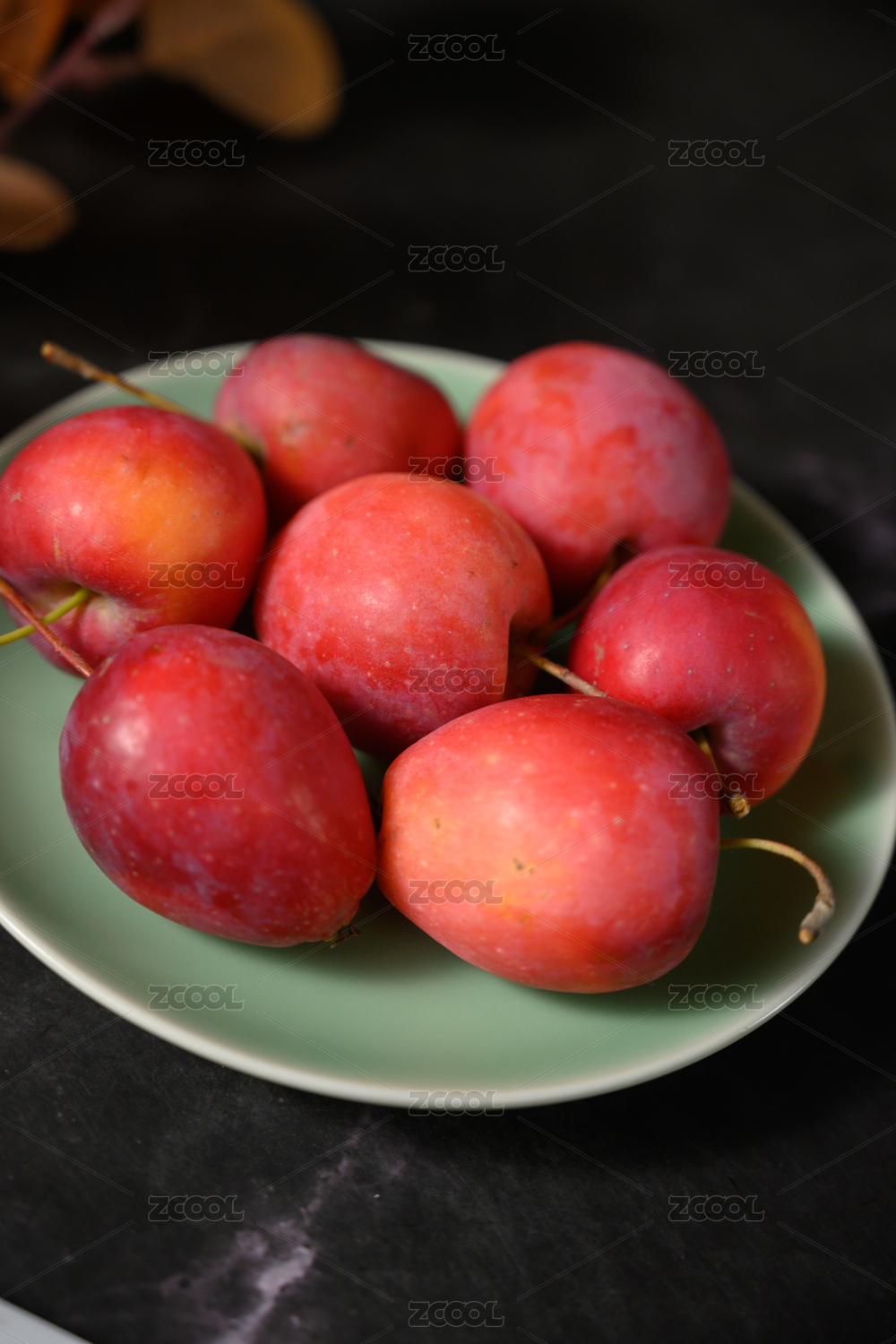 桌面上的盘子里的新鲜海棠果