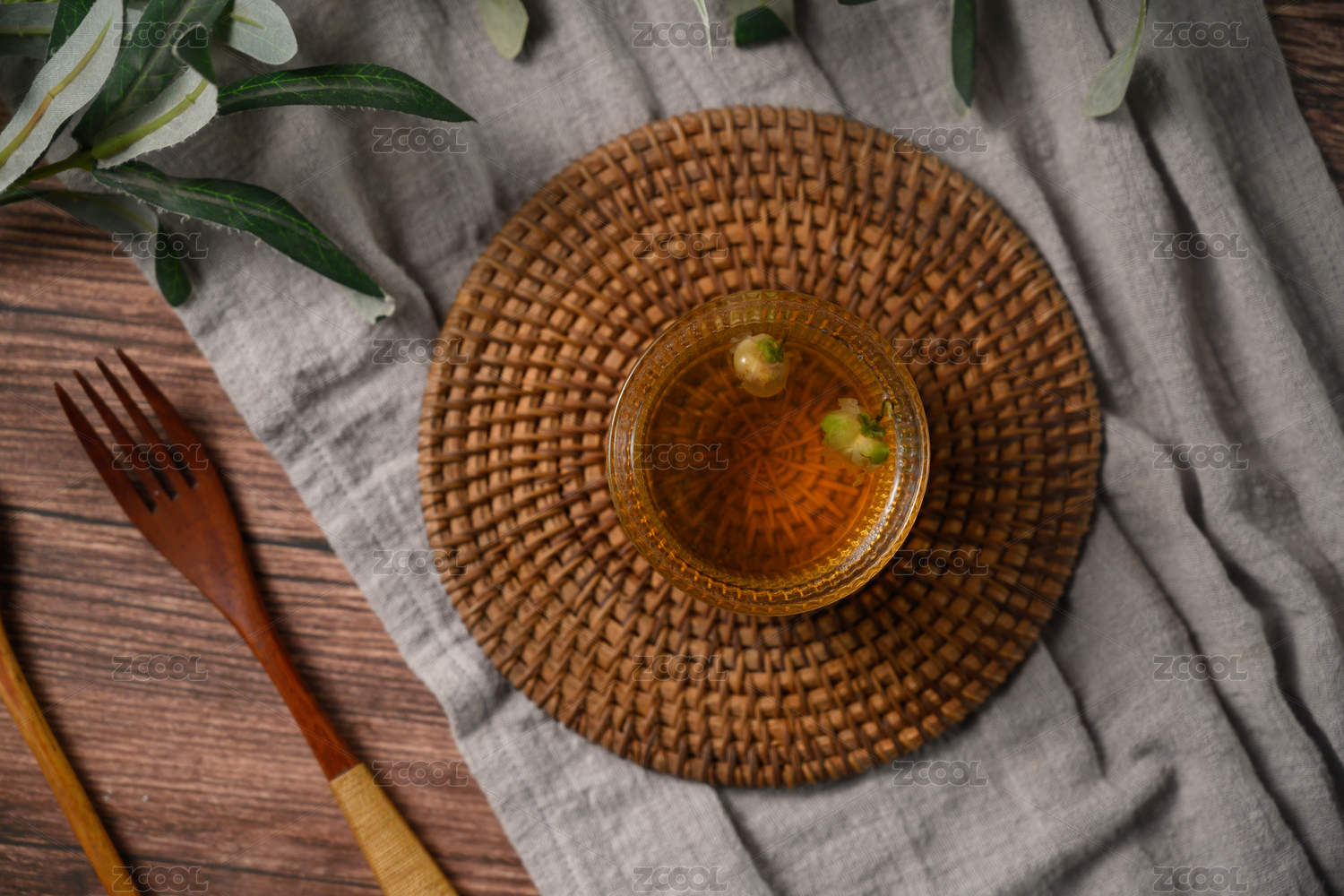 桌面上的杯子里的甘甜可口的玉兰花茶