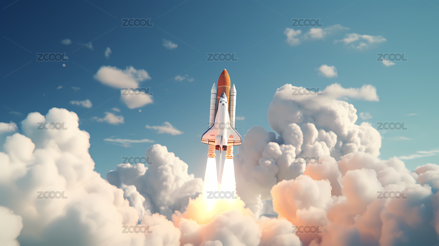 蓝天背景下的火箭发射场景