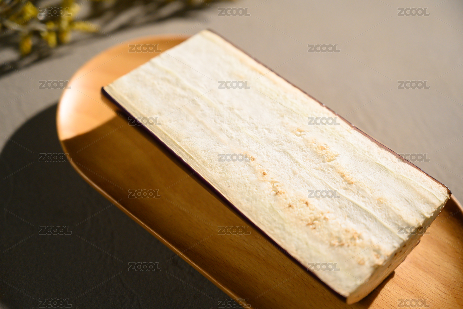 桌面上的盘子里的切开的美味可口的新鲜茄子