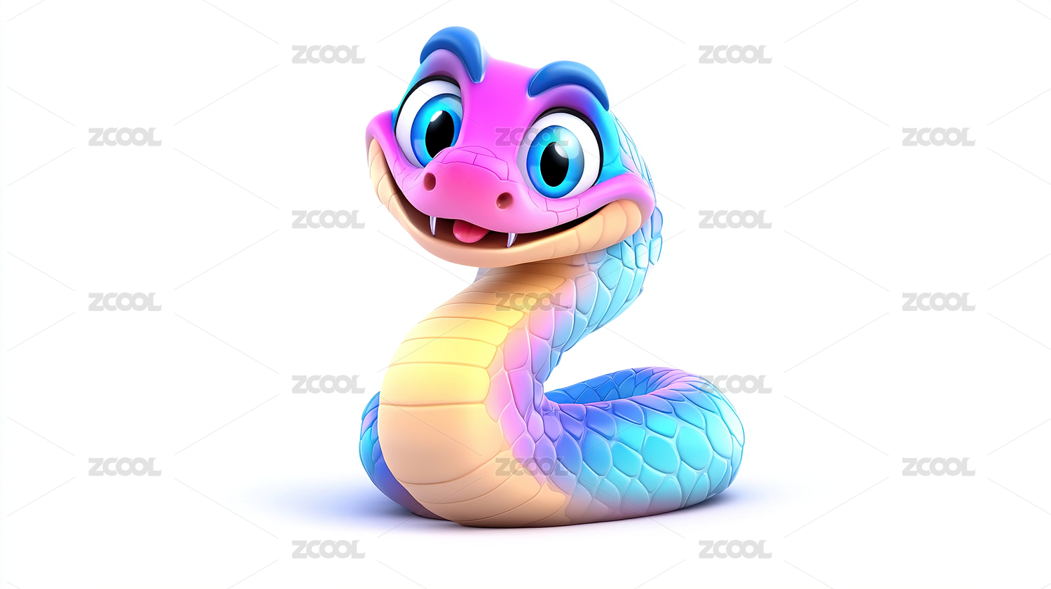 可爱的3D癸巳年蛇年小蛇卡通插画