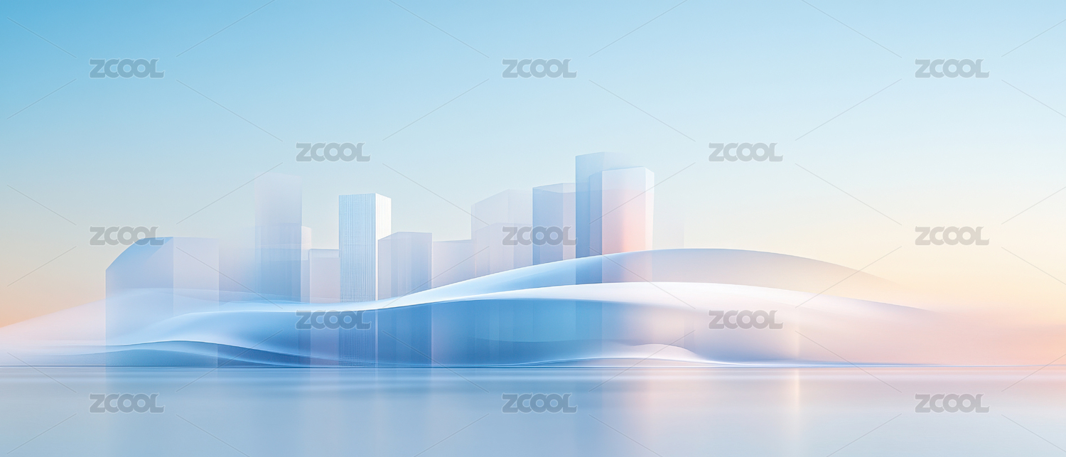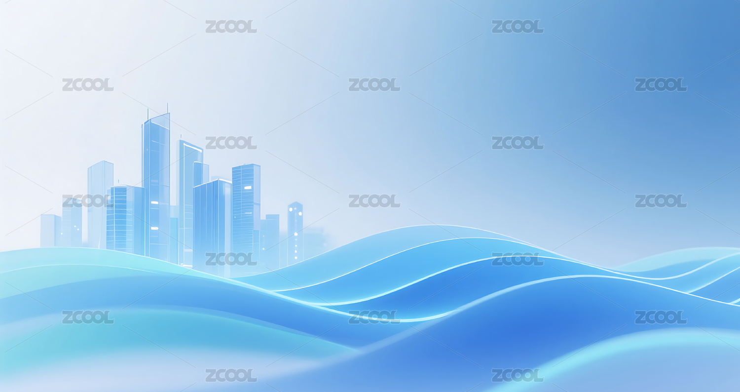 流畅的蓝色渐变波浪线条玻璃城市建筑