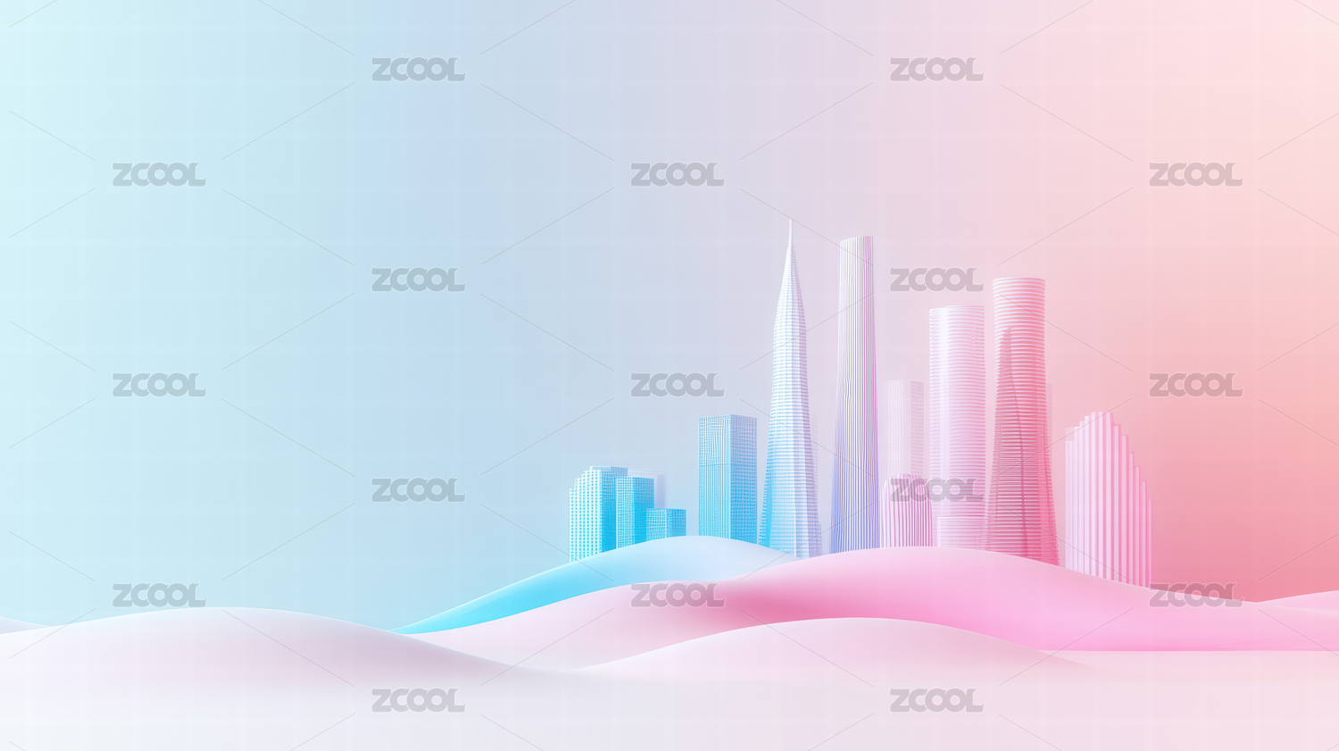 流畅的蓝绿色渐变波浪线条玻璃城市建筑