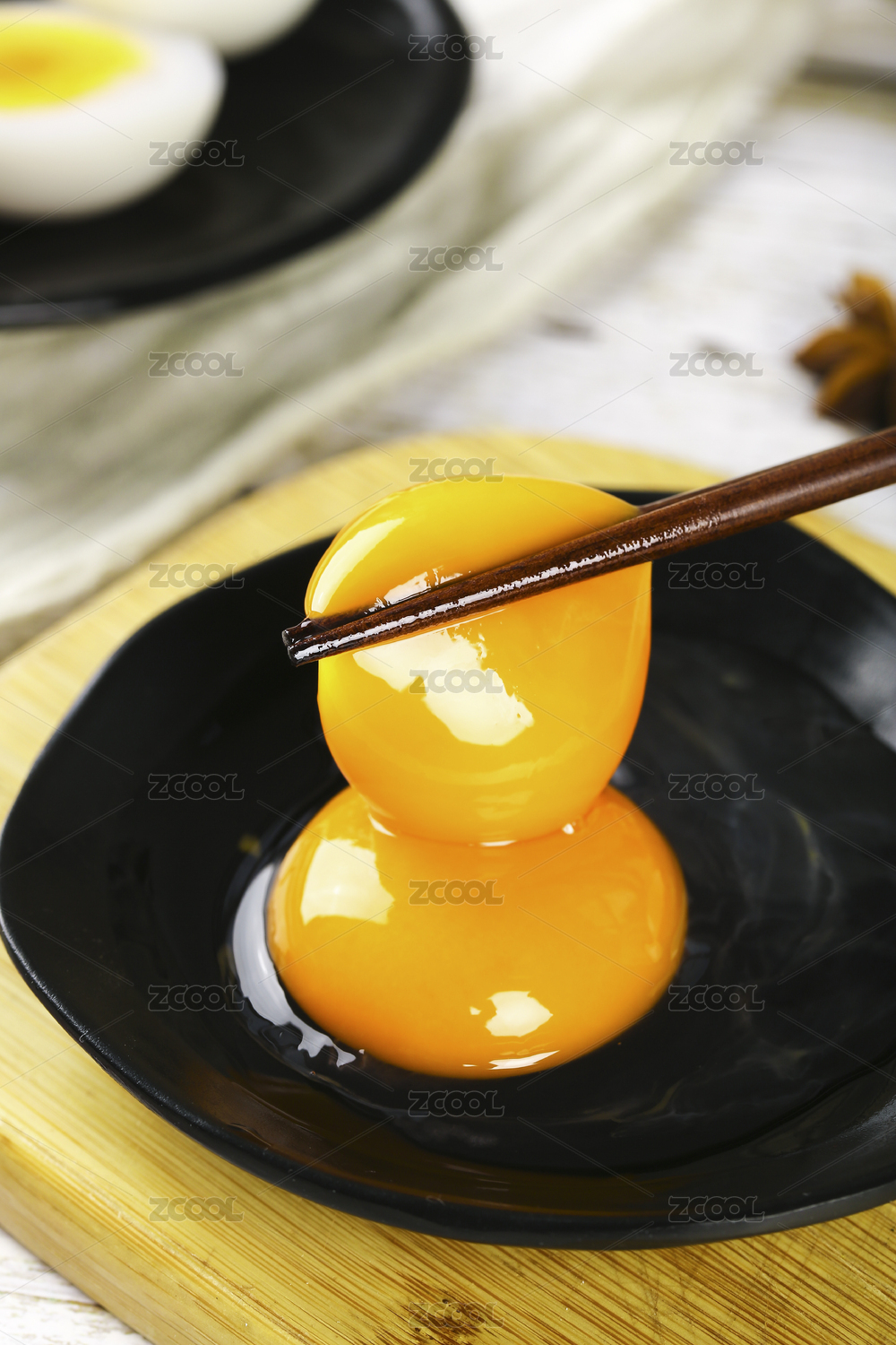 碟子里放着鹌鹑蛋和勺子上挖着鹌鹑蛋黄