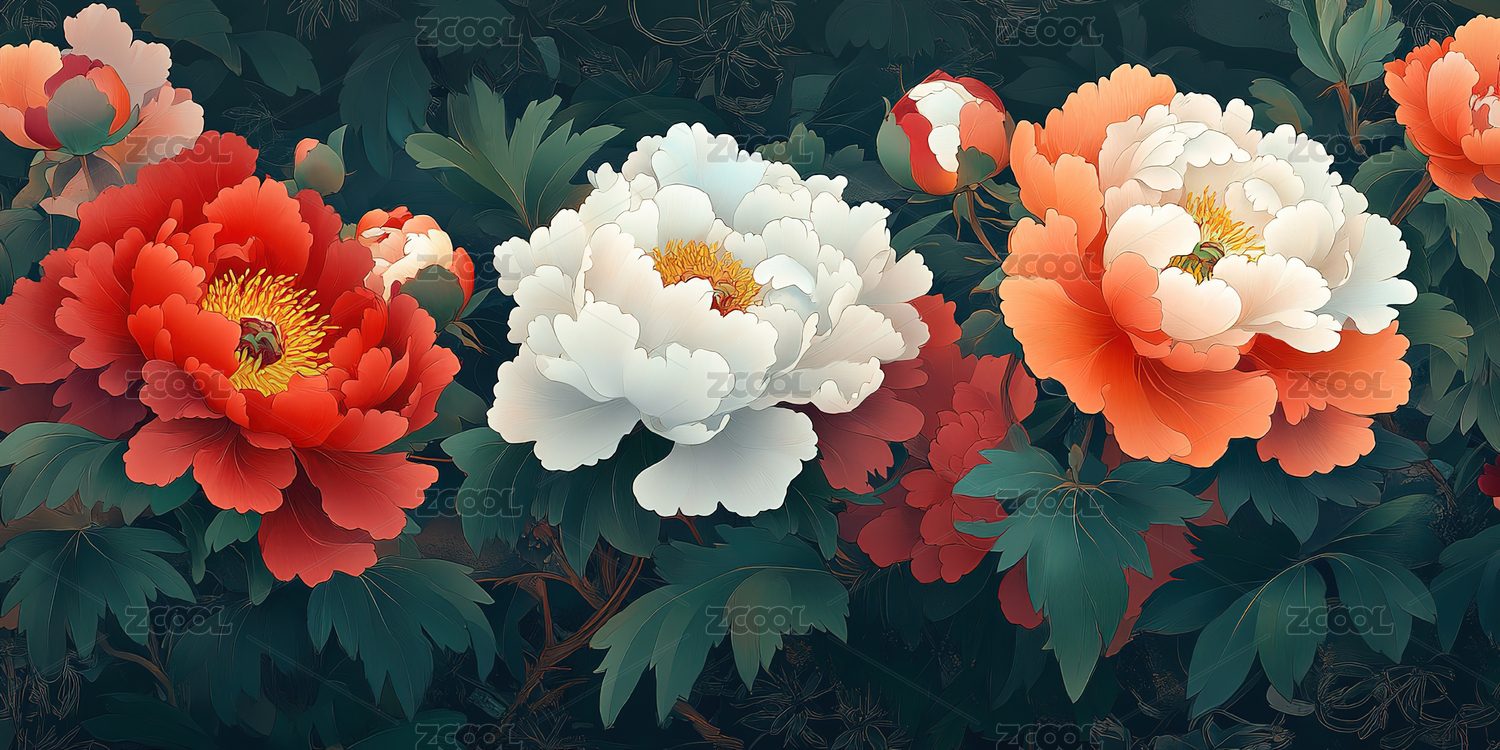 粉色黄色牡丹花植物水彩无缝图案纹理
