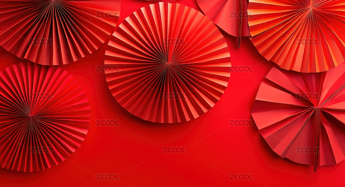红色背景下的折扇特写