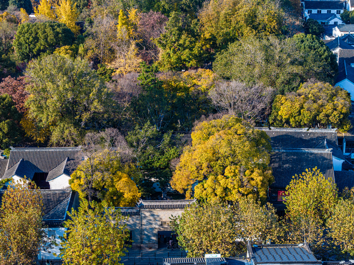 中国江苏苏州政园秋季航拍