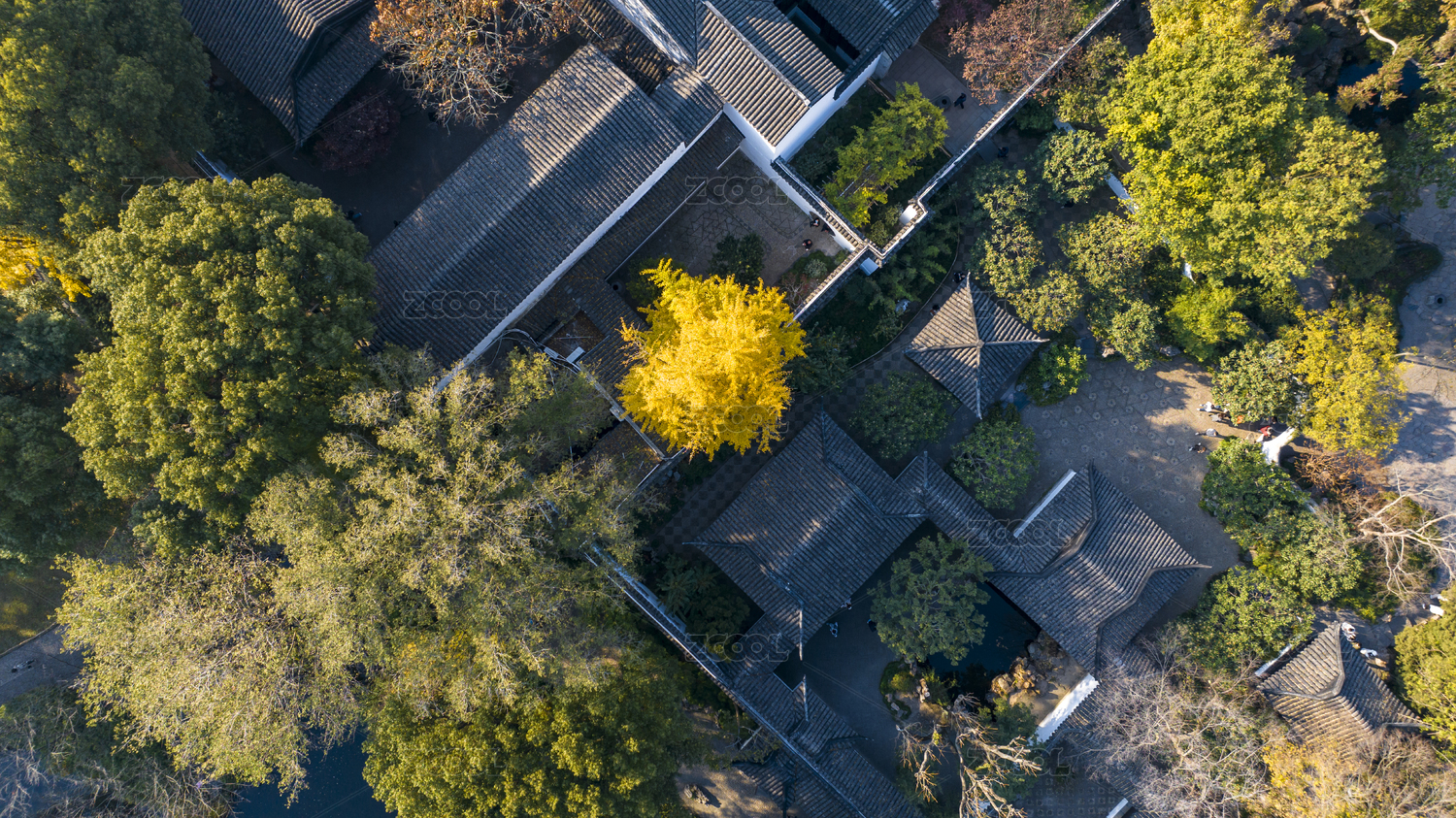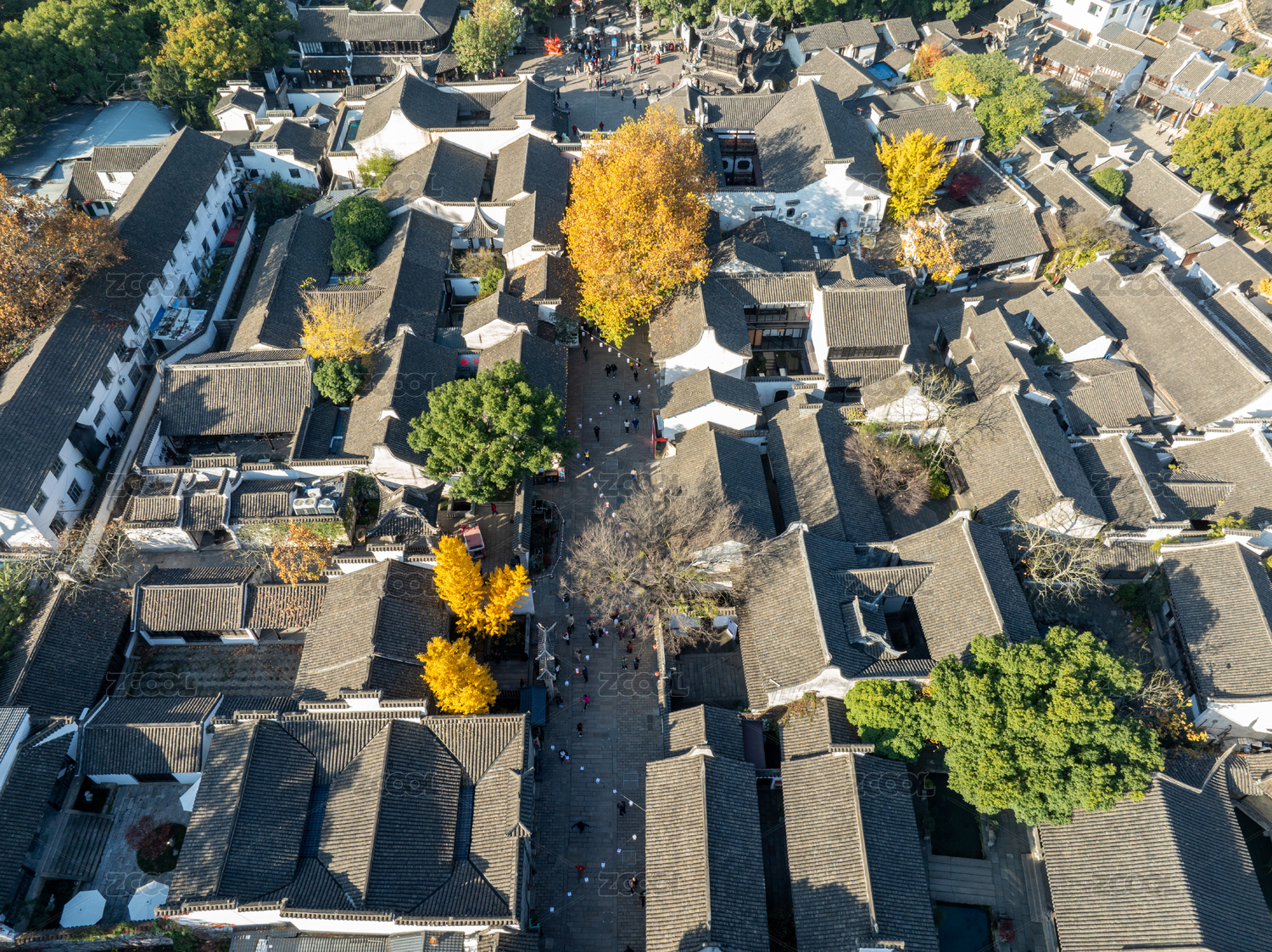 江苏省无锡市惠山古镇住宅房屋和银杏树风光