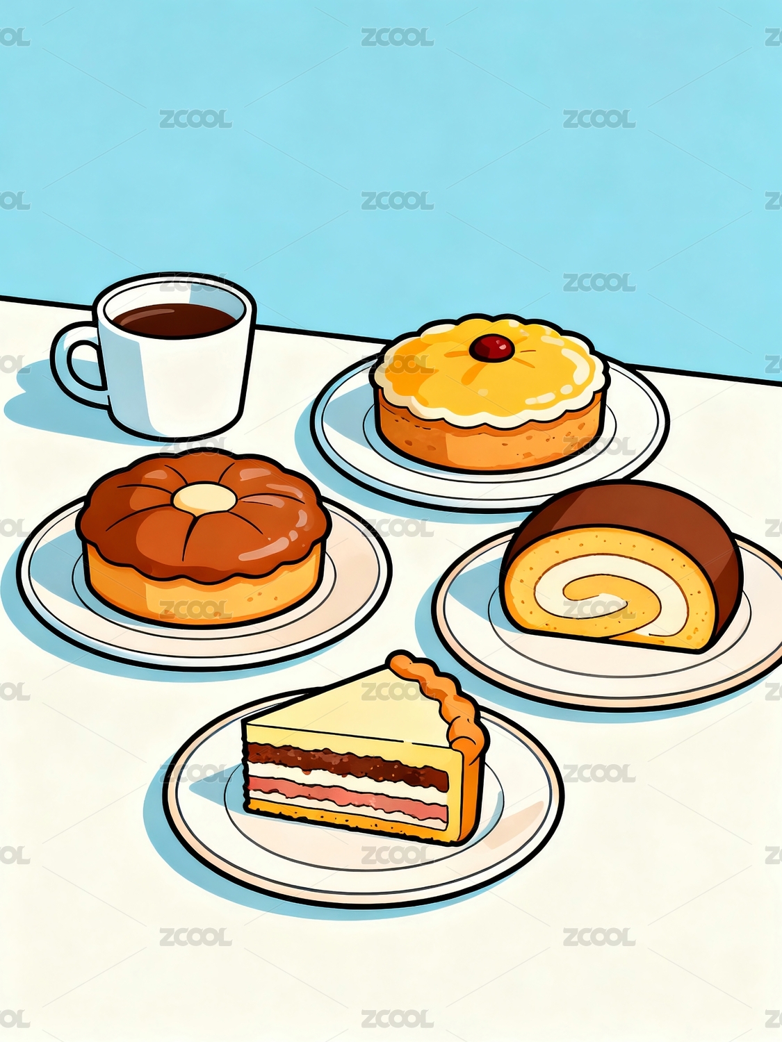 少女,插画,蝴蝶,唯美,光,水彩,甜点,蛋糕,面包,碎花
