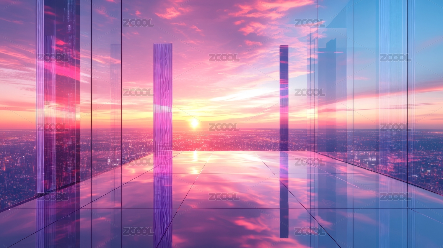 玻璃窗外的梦幻日落