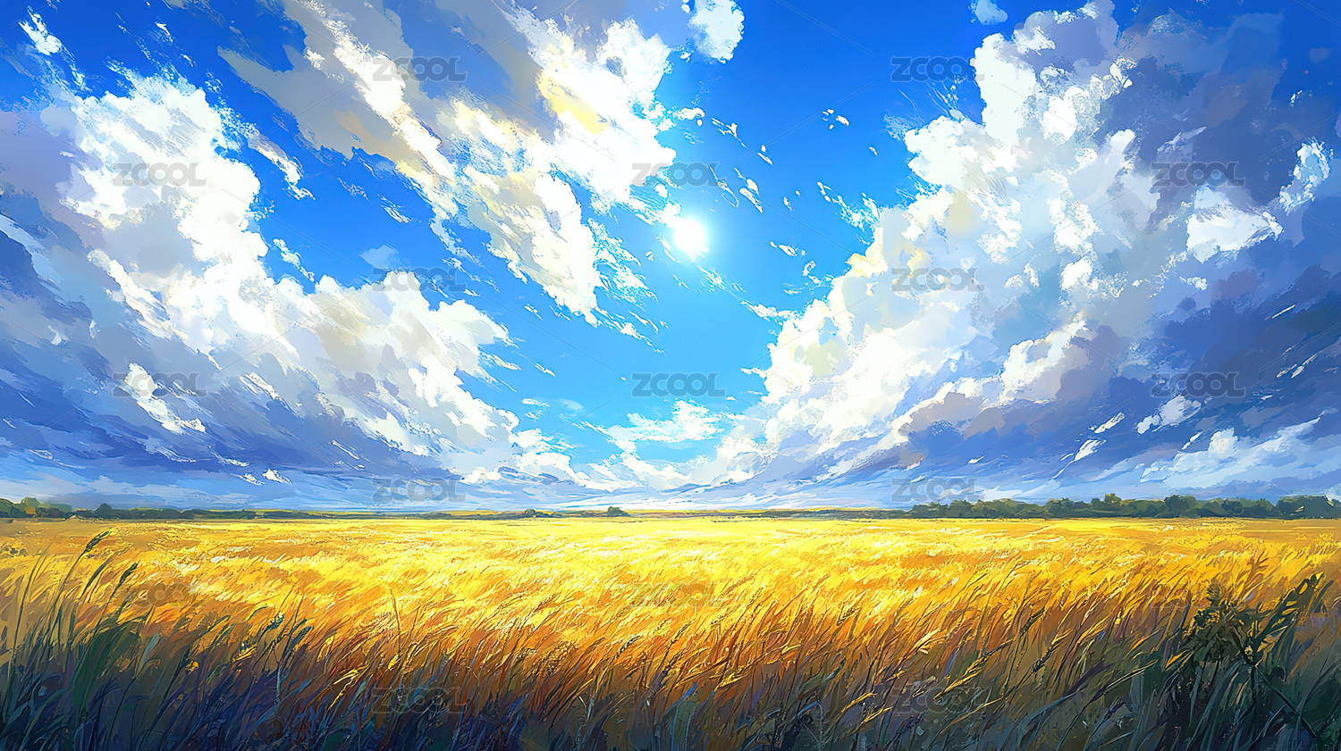 AI数字艺术,自然,云,风景,田地,户外,天空,小麦,农业,田园风光