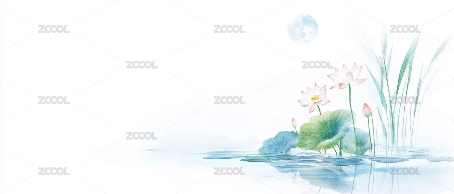 月下荷花背景