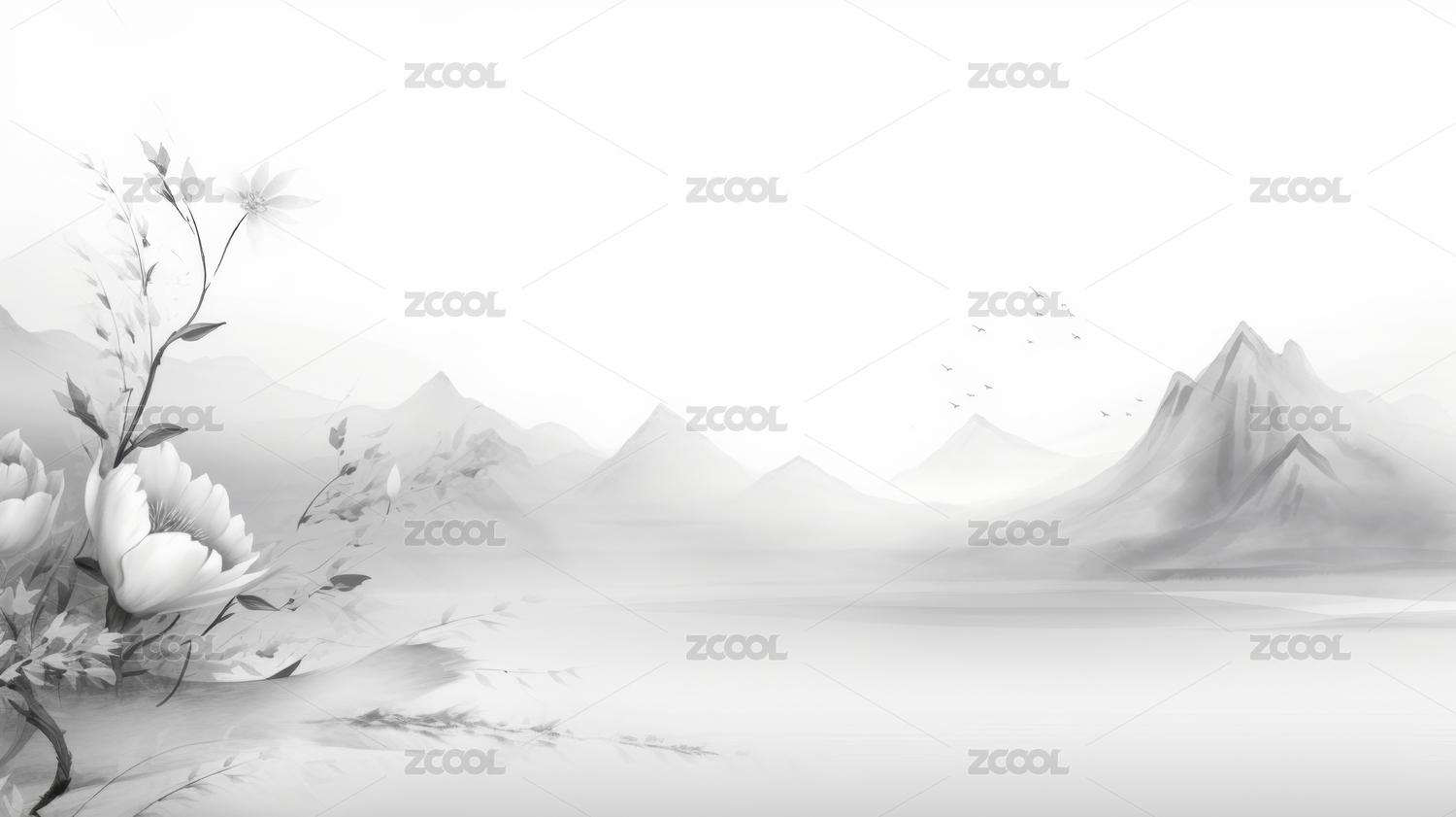 水墨风单枝绽放花朵