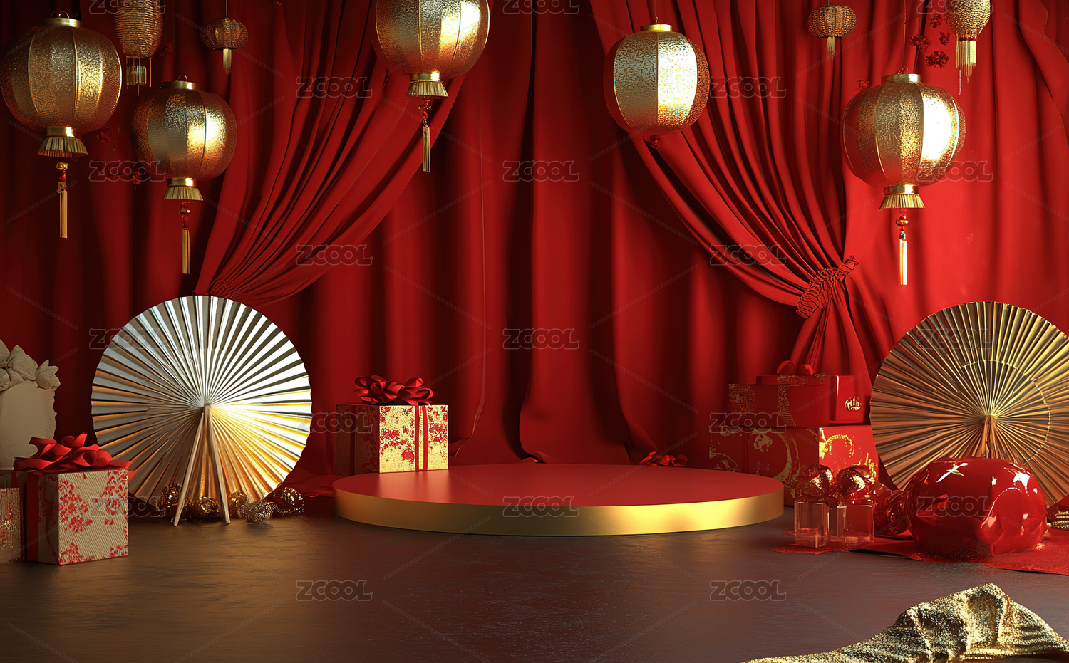 红色背景下的中式灯笼