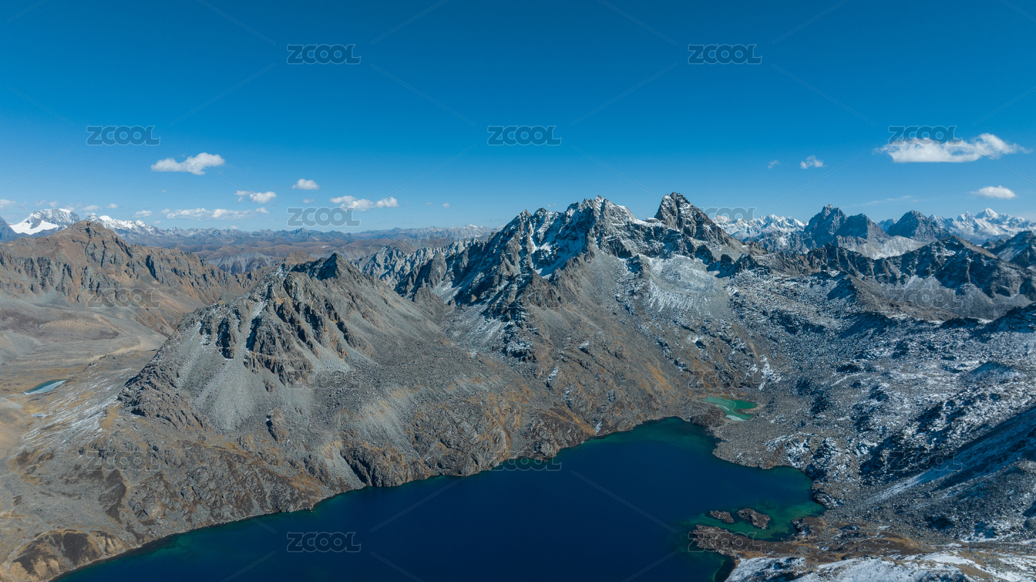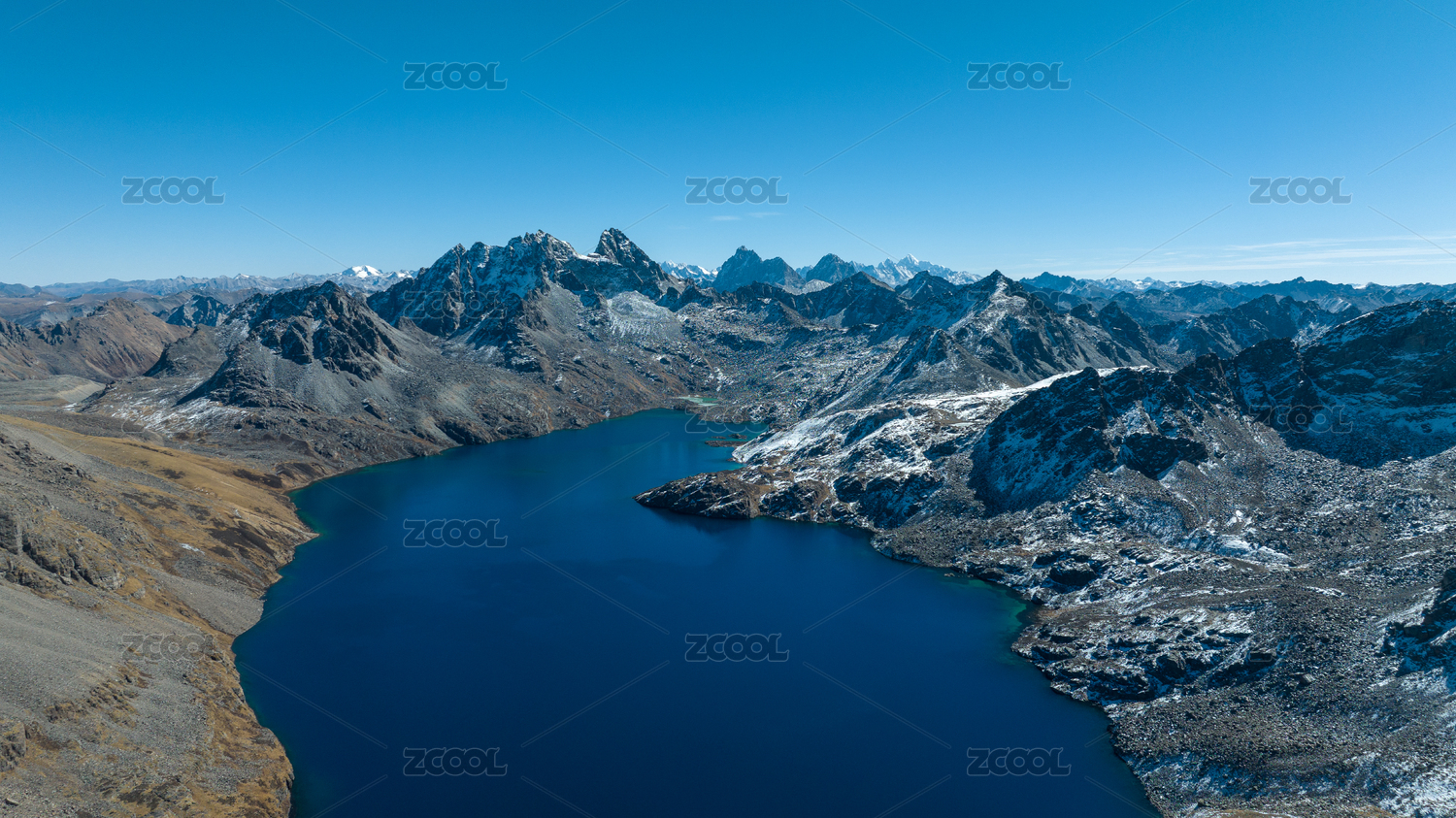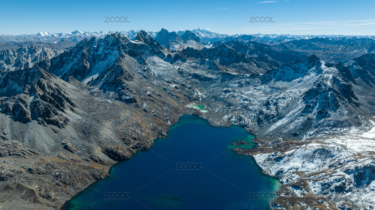 中国四川巴塘县亚莫措根雪山湖泊风光