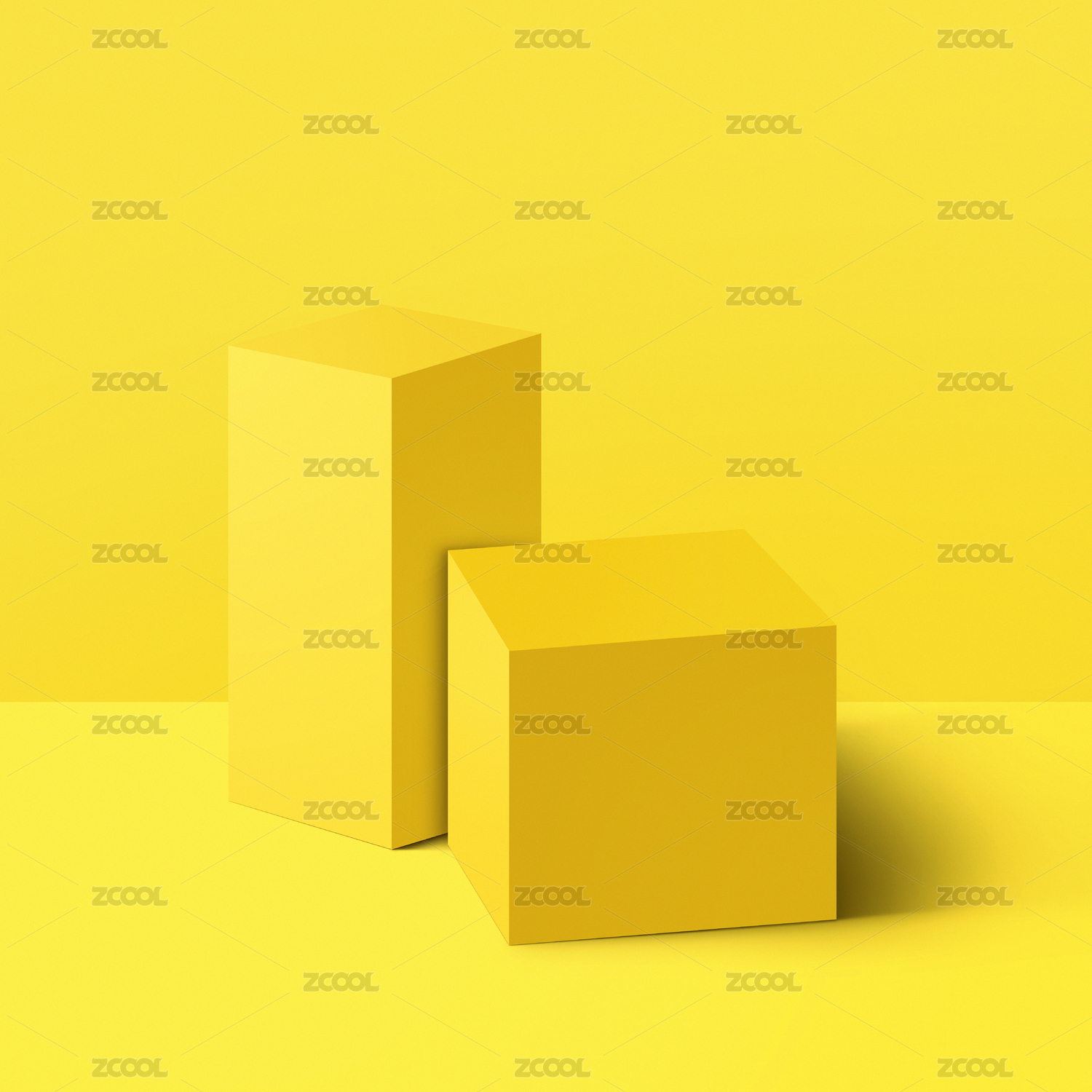 黄色背景中摆放的黄色几何体