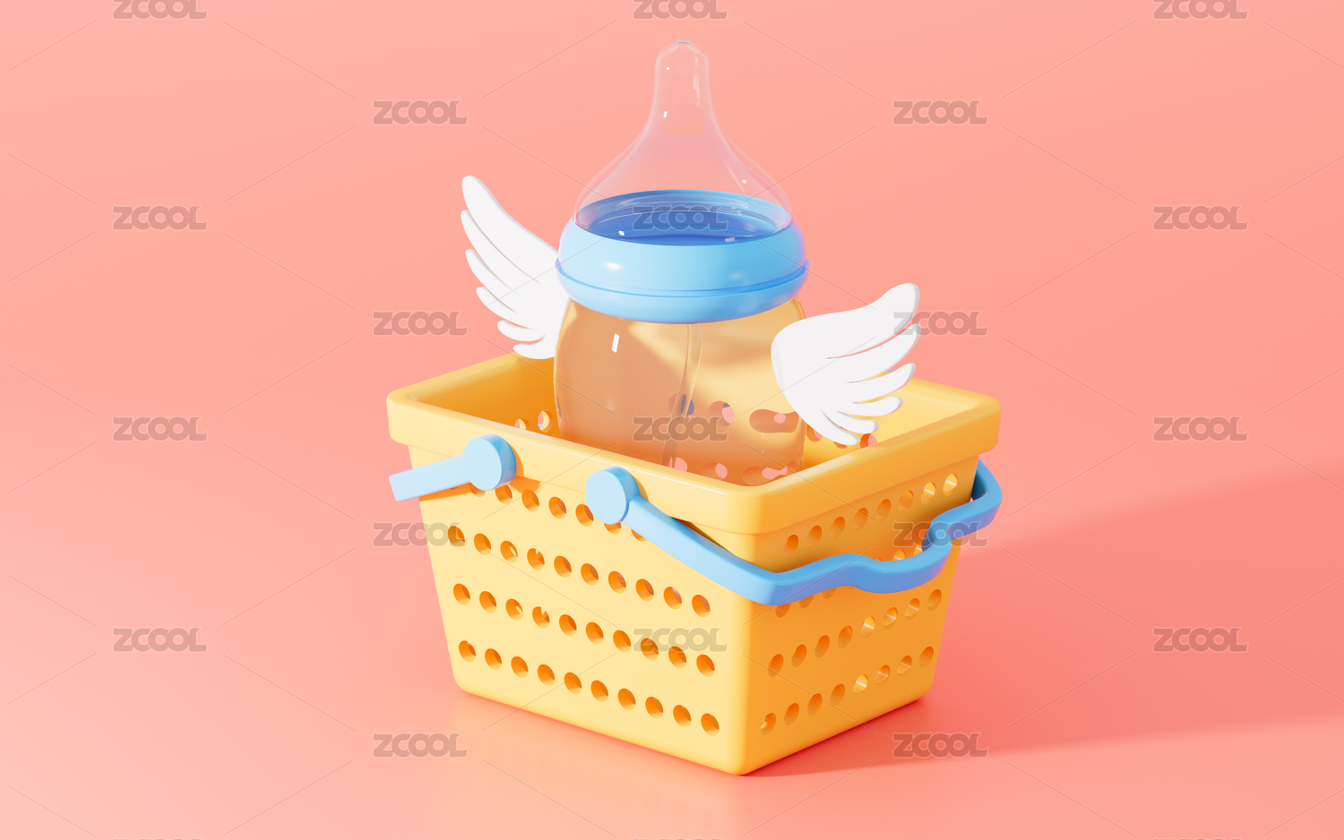 3D,插画,背景,健康,护理,黄色,卡通,翅膀,可爱,空的