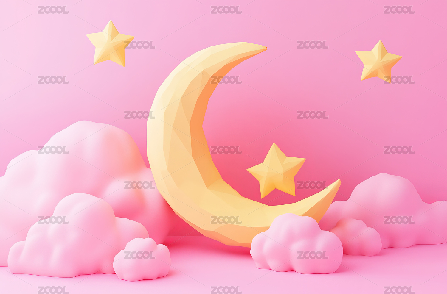 梦幻粉色背景与黄色月亮