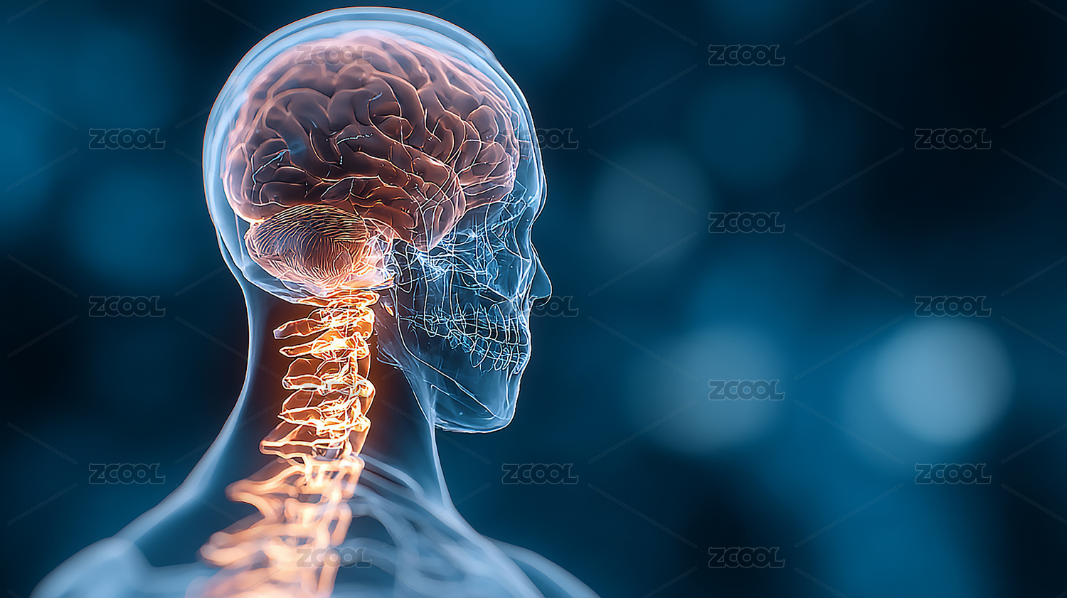 人体大脑及颈椎骨骼透视图