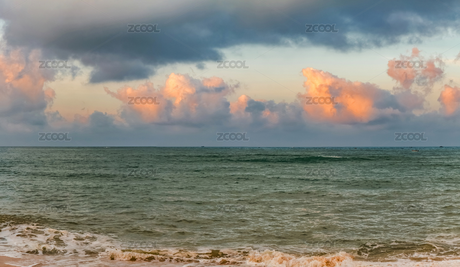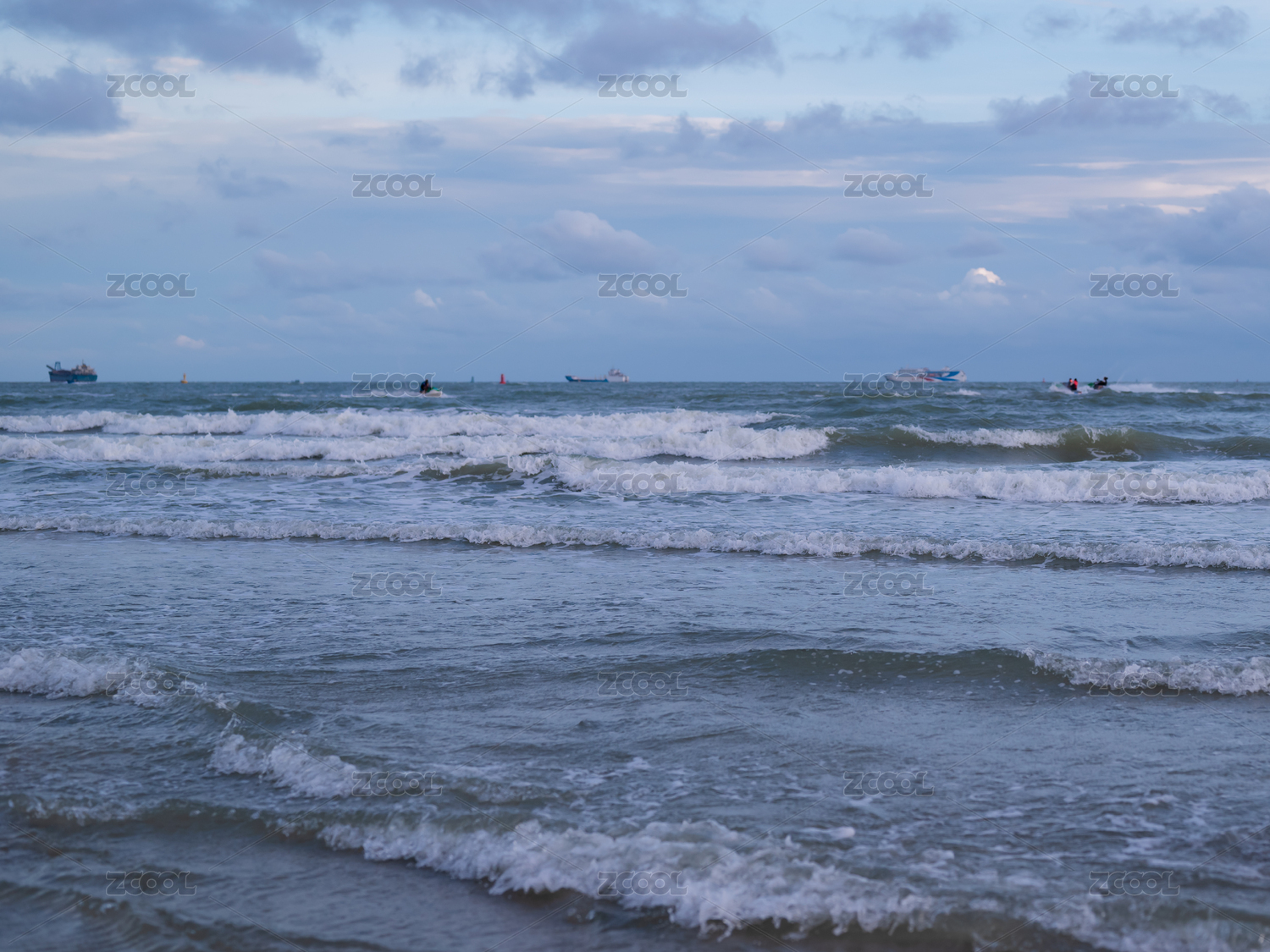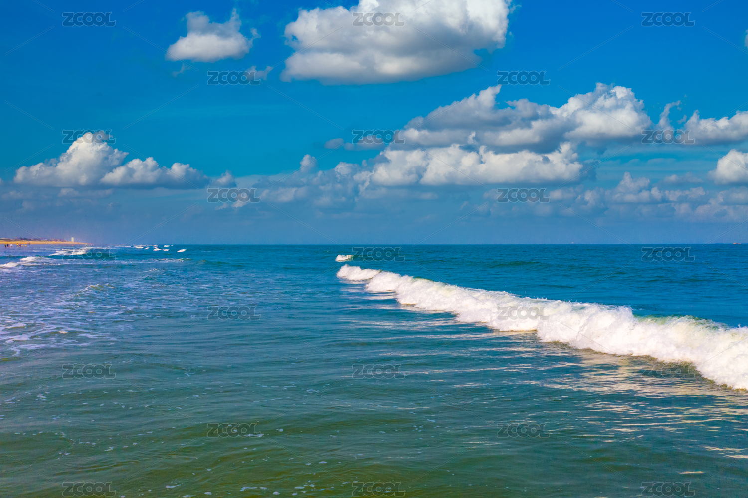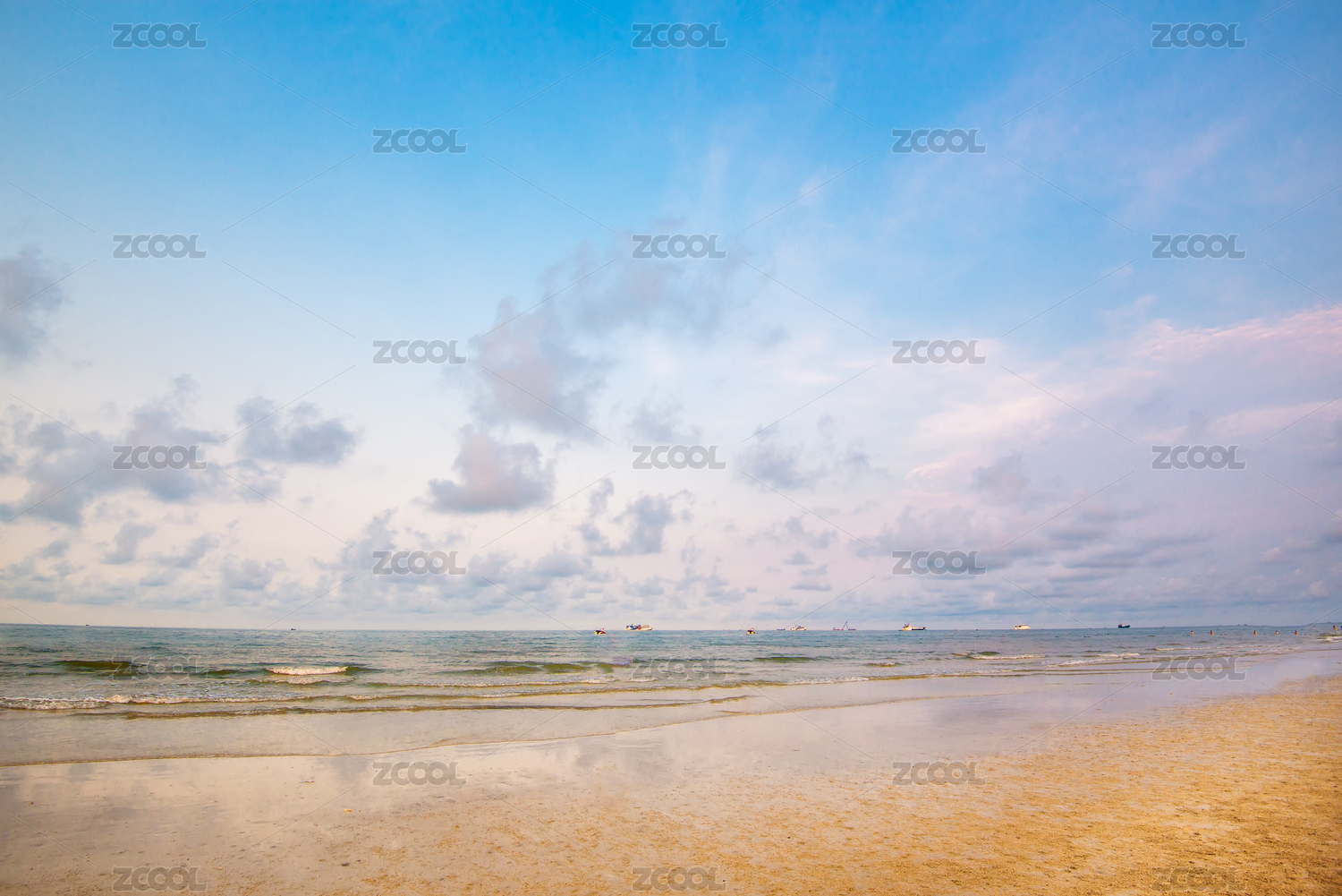海南博鳌海岸边蓝天白云下的碧波沙滩远景