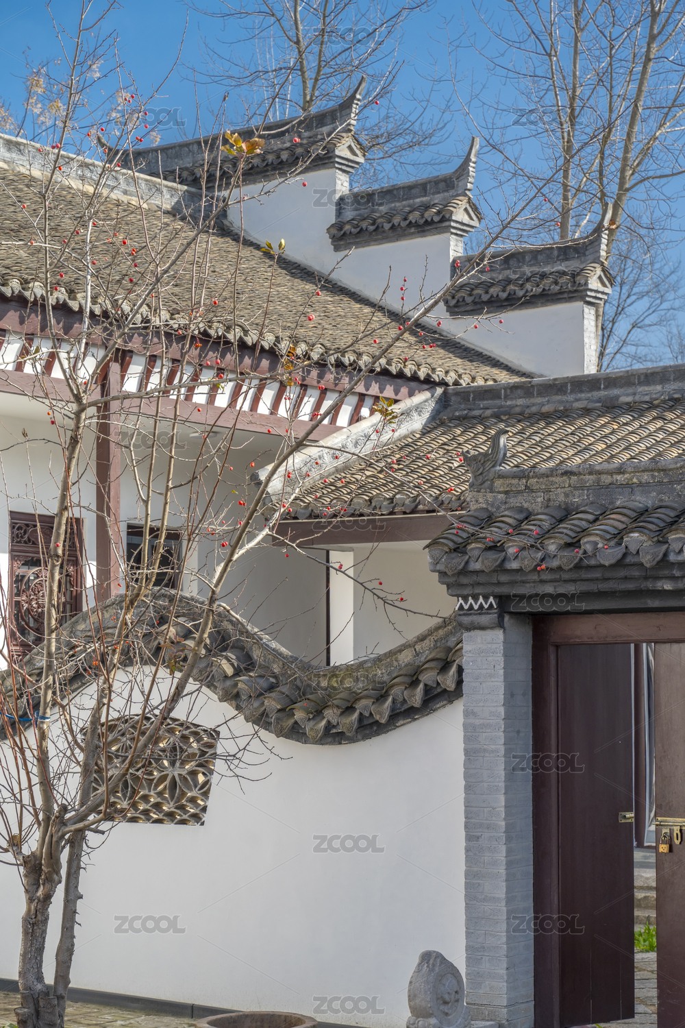 徽派,白墙,黑瓦,古建筑,建筑,中式,植物,屋檐,木门,文化