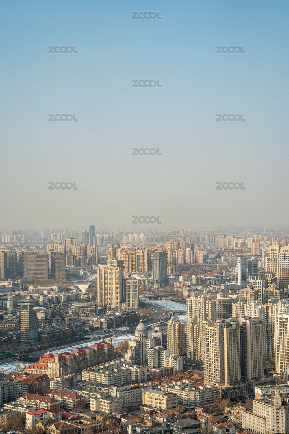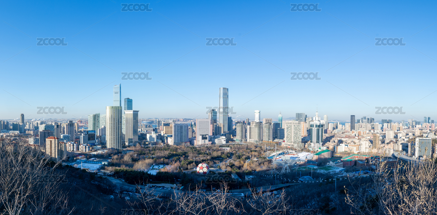 从景山公园最高点俯瞰冬日里的北京城市风光