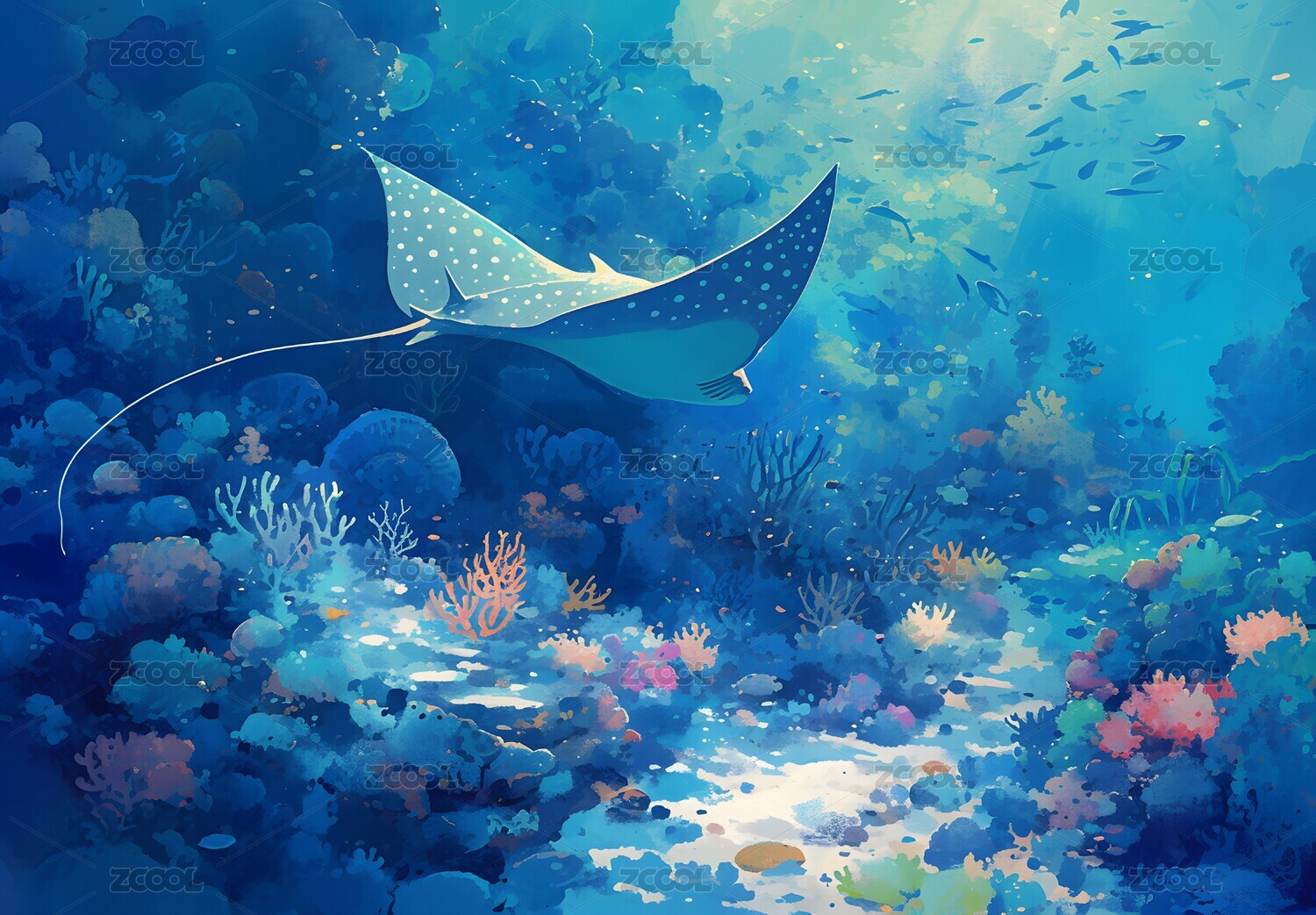 白天阳光海底世界唯美插画