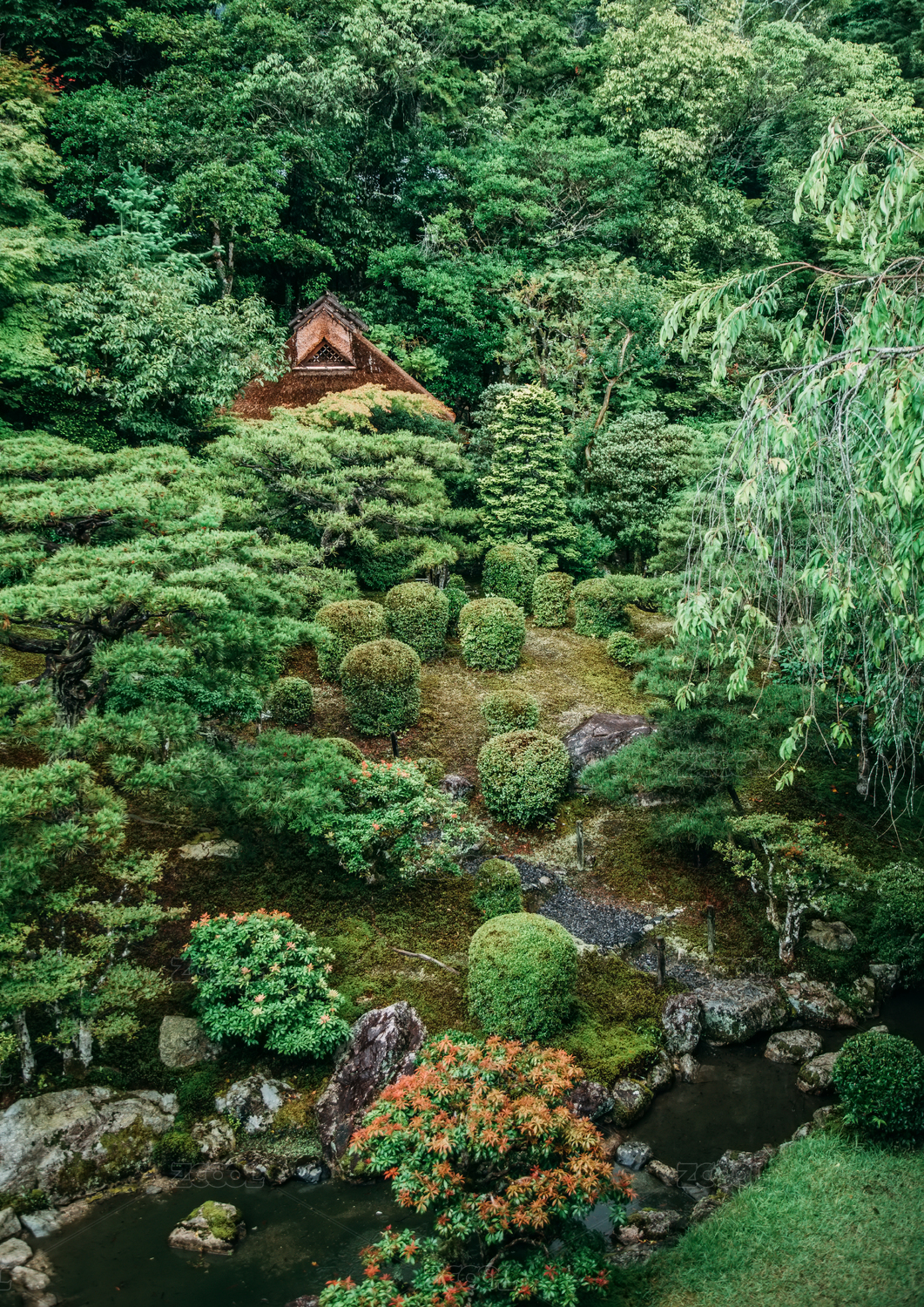 古寺屋顶绿意