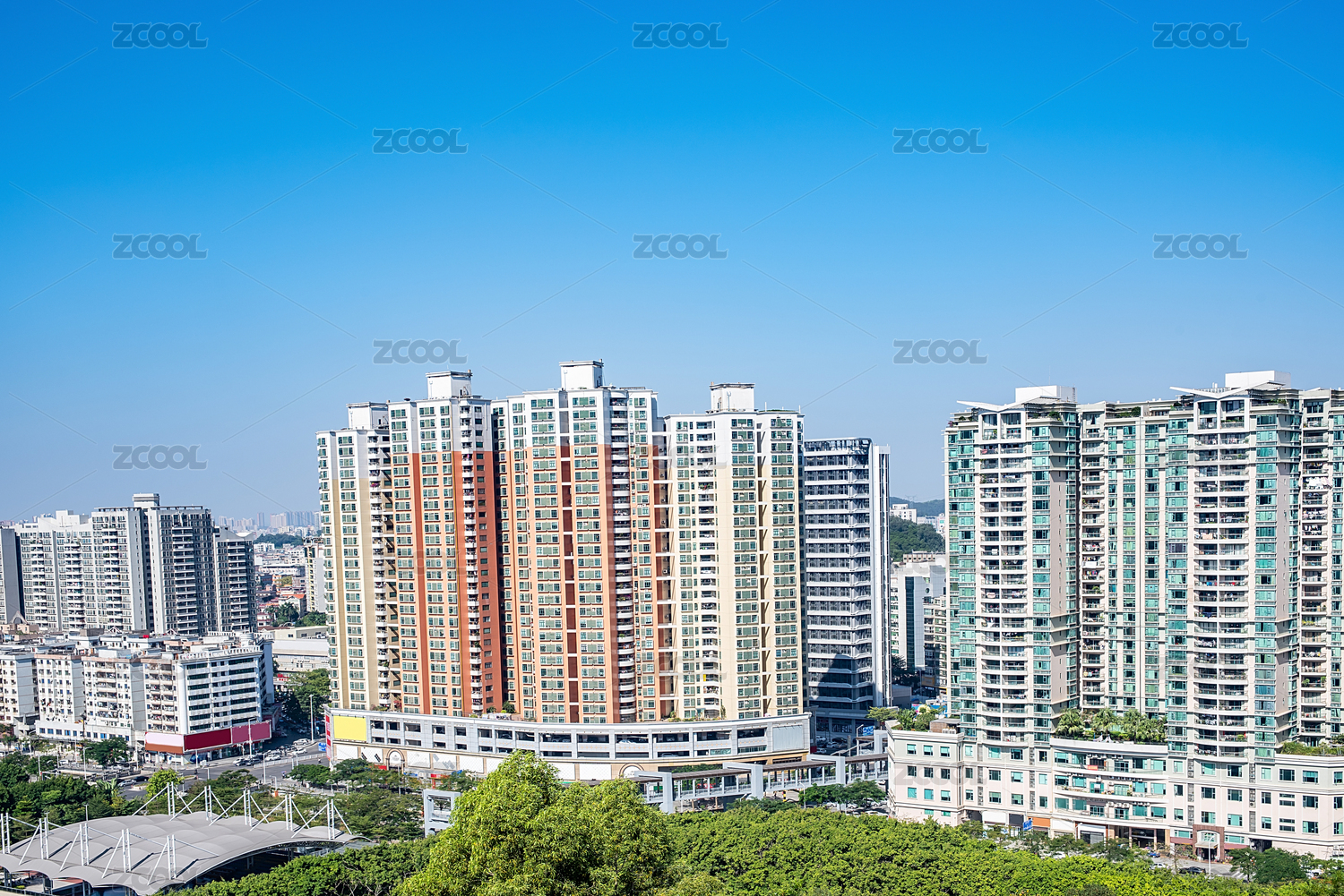中国广东省深圳城市商业住宅建筑群高楼风光