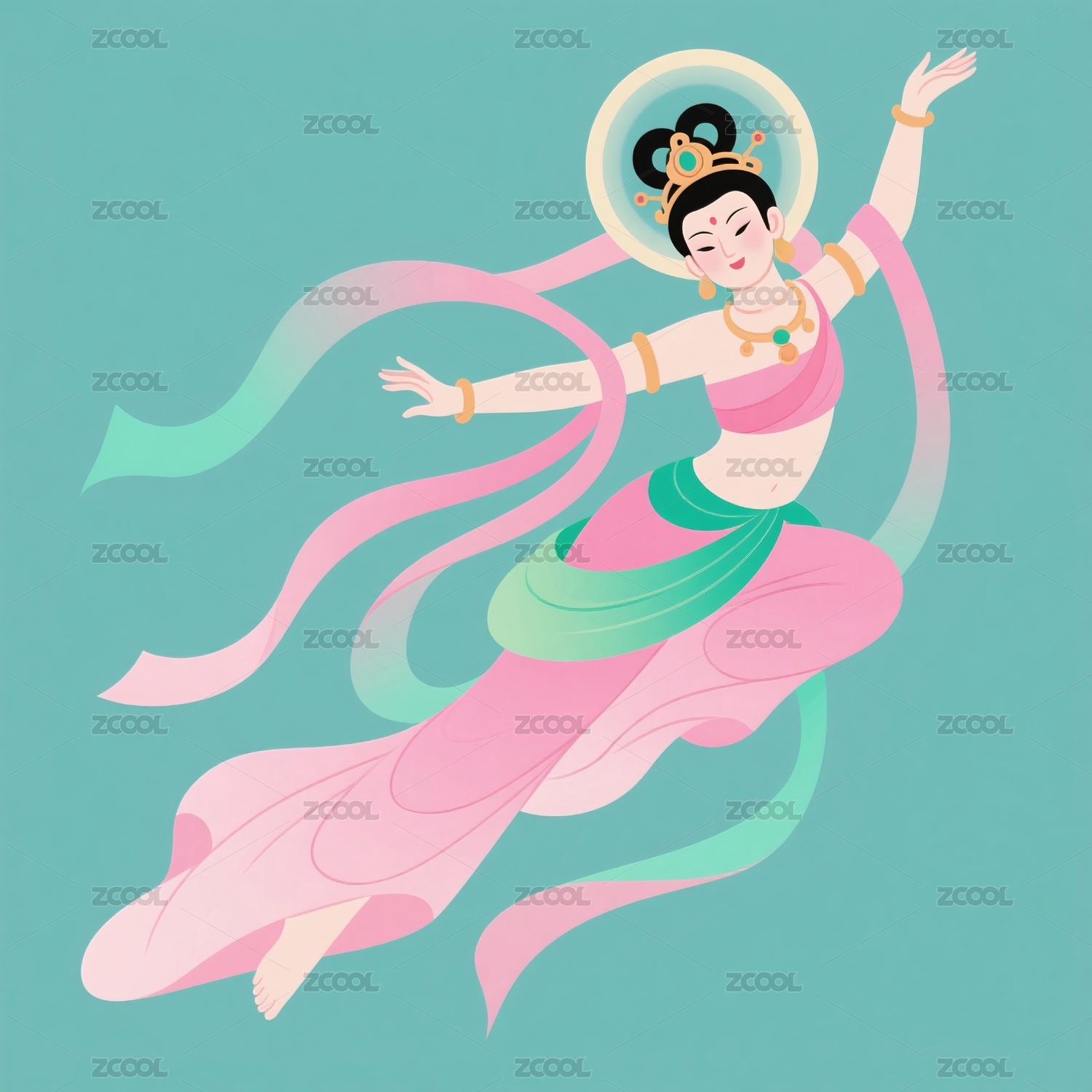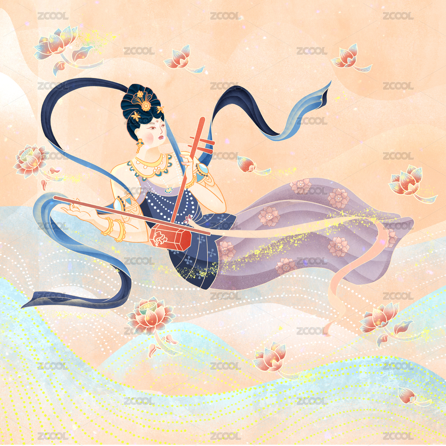 国风敦煌莫高窟飞天伎乐天吹笛无背景