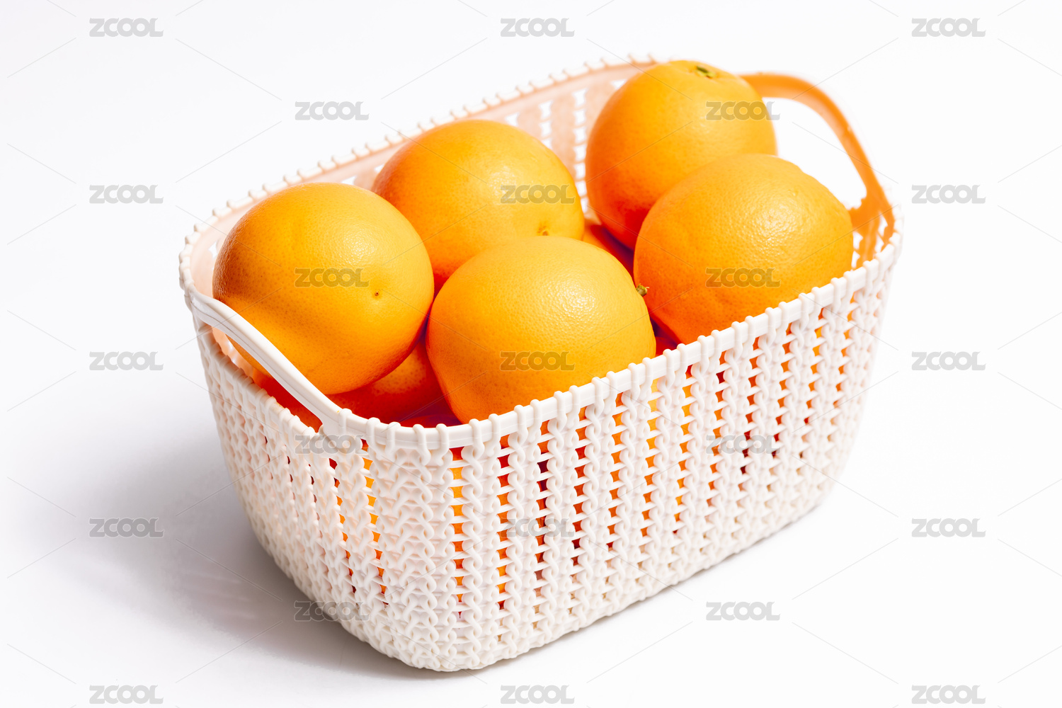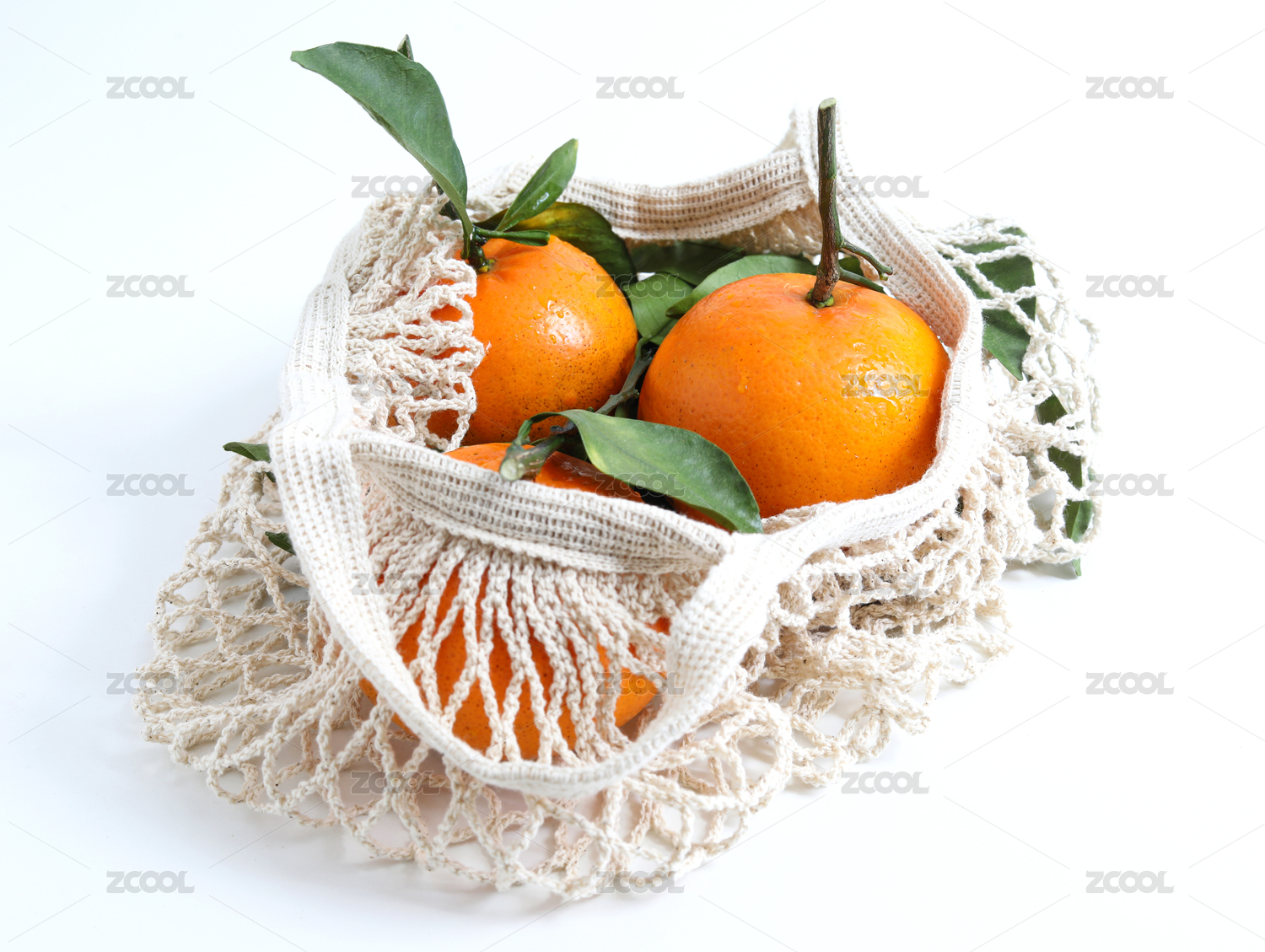 白色椅子上挂着一袋子新鲜的水果橙子脐橙