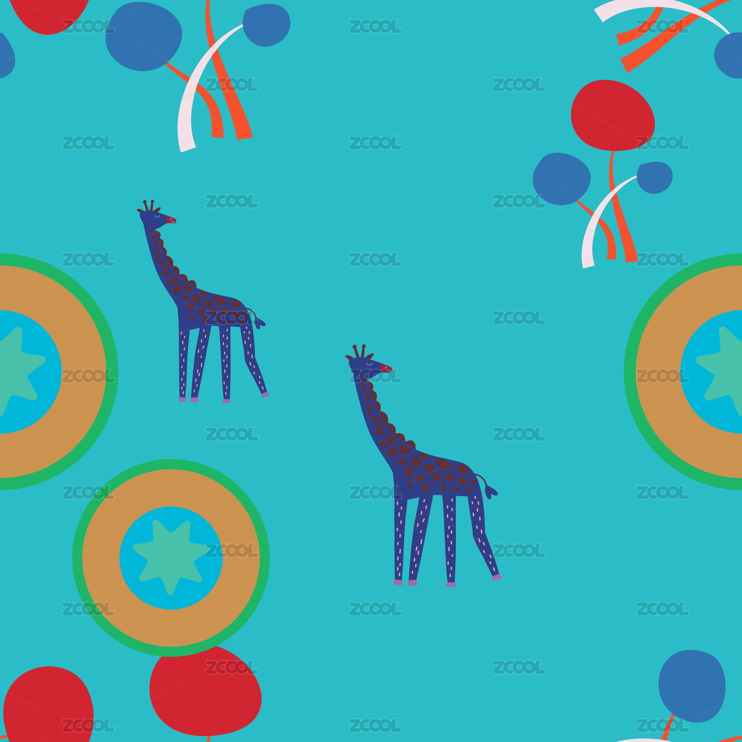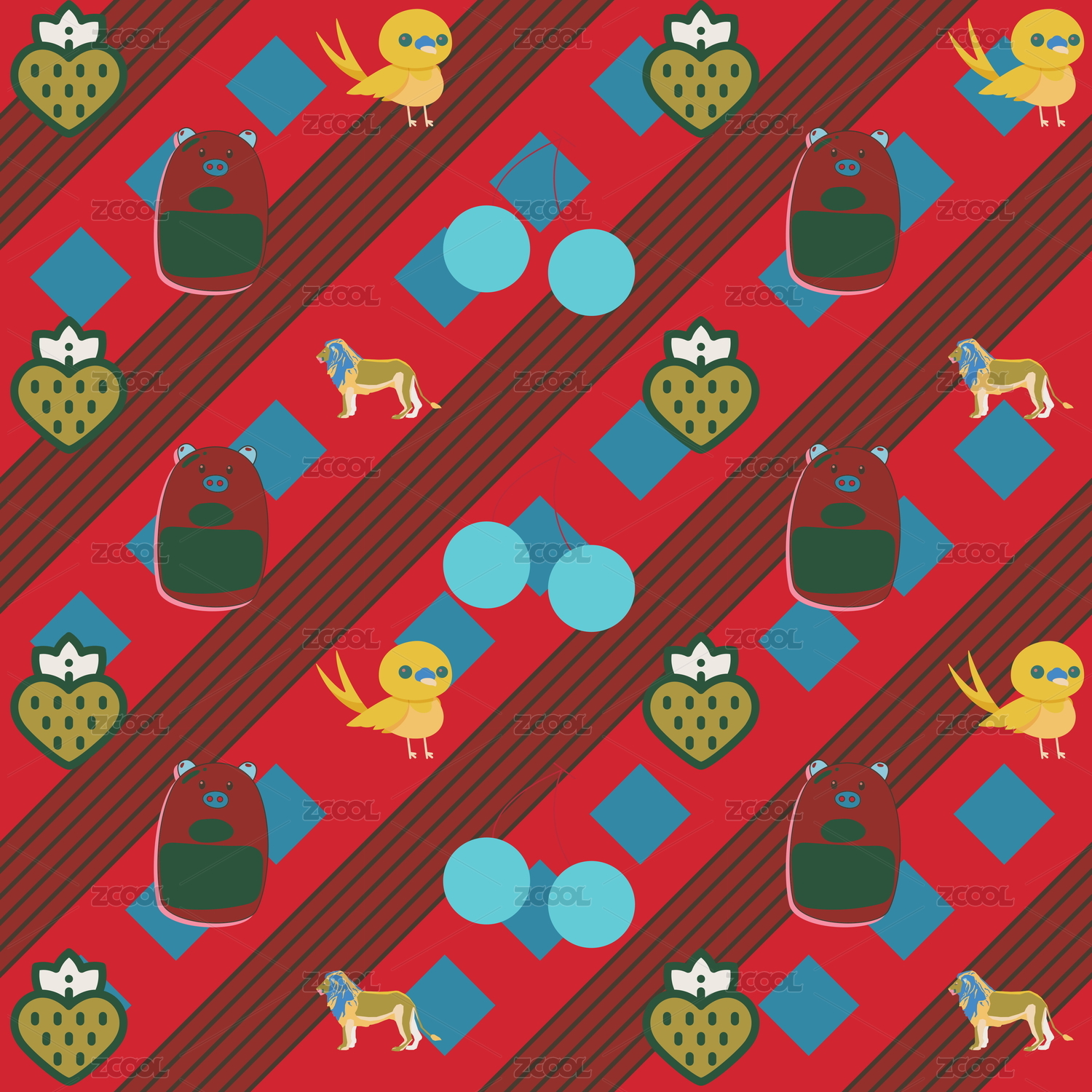 卡通动物无缝插画