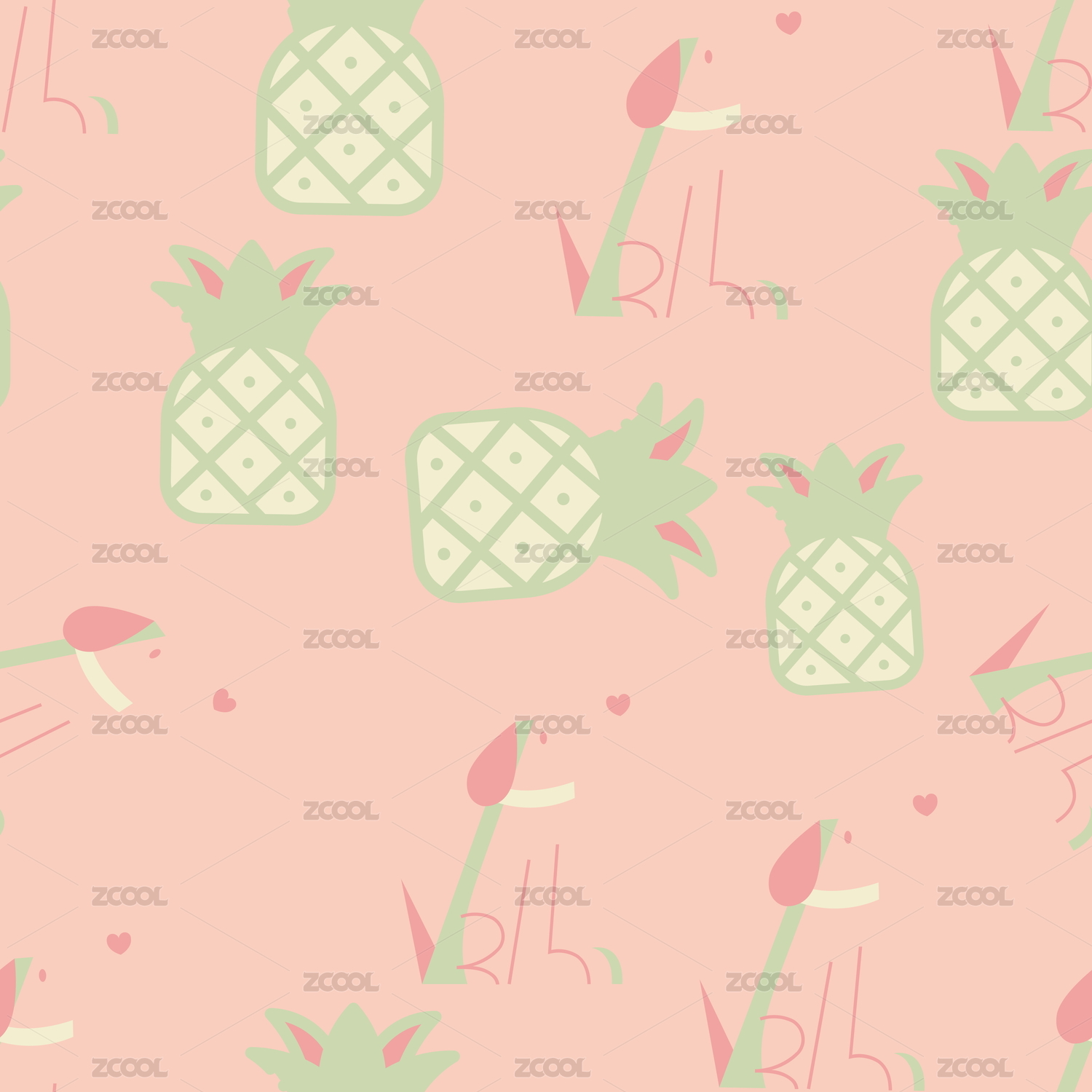创意卡通动物植物叠加格纹印花